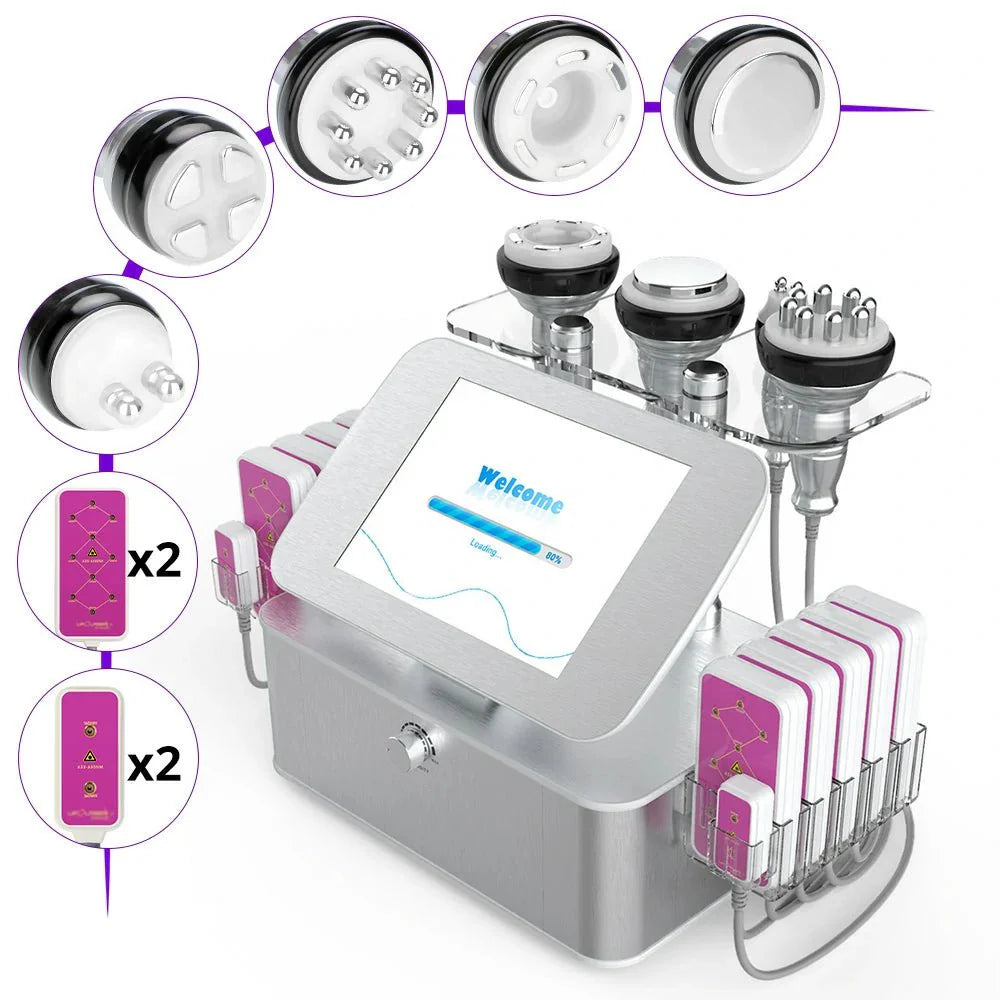 • 7-in-1 system combining ultrasonic cavitation, RF, vacuum therapy, and LED laser for versatile contouring and skin tightening.