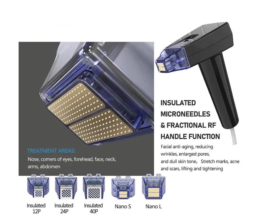 • 3x Insulated Micro-Needle RF Heads (12 pins, 24 pins, 40 pins)