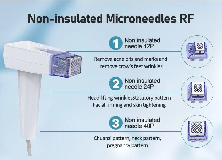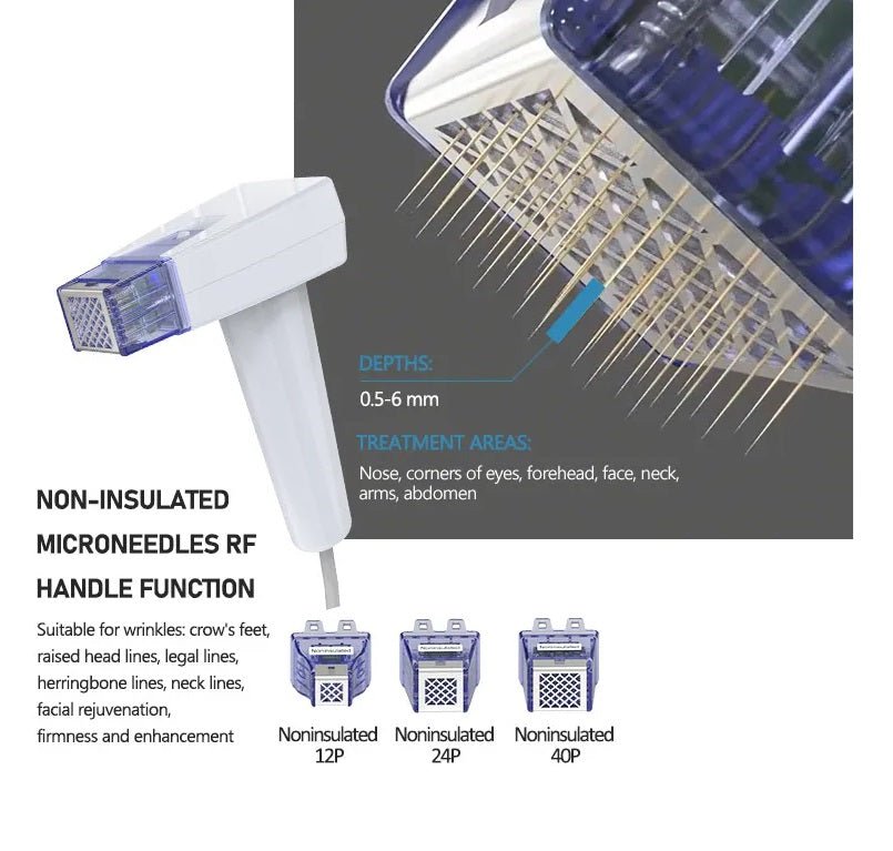 • 3x Non-Insulated Micro-Needle RF Heads (12 pins, 24 pins, 40 pins)