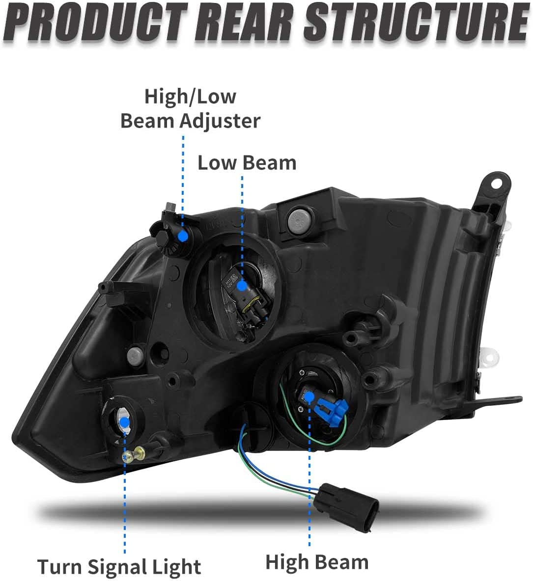 - ADCARLIGHTS 2004-2008 F150 Headlight Assembly for 04-08 Ford F150 / 06-08 Lincoln Mark LT Clear L...