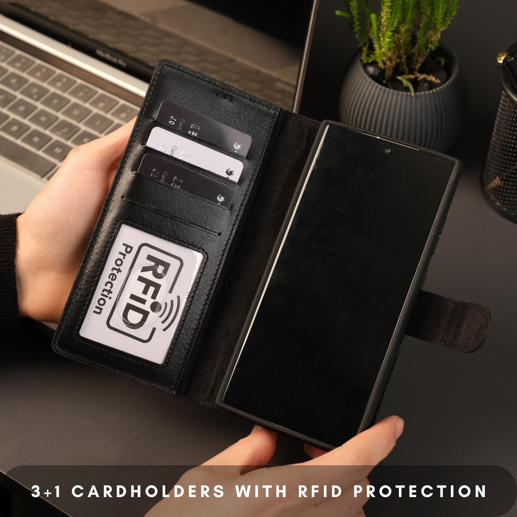 Elevate your Samsung Galaxy S24 Ultra experience with the TORONATA Buffalo leather wallet case—a classy, full-grain leather solution for people who want protection, organization, and a touch of luxury. No more digging for cards in a crowded pocket; this wallet case keeps everything you need in one stylish place.
