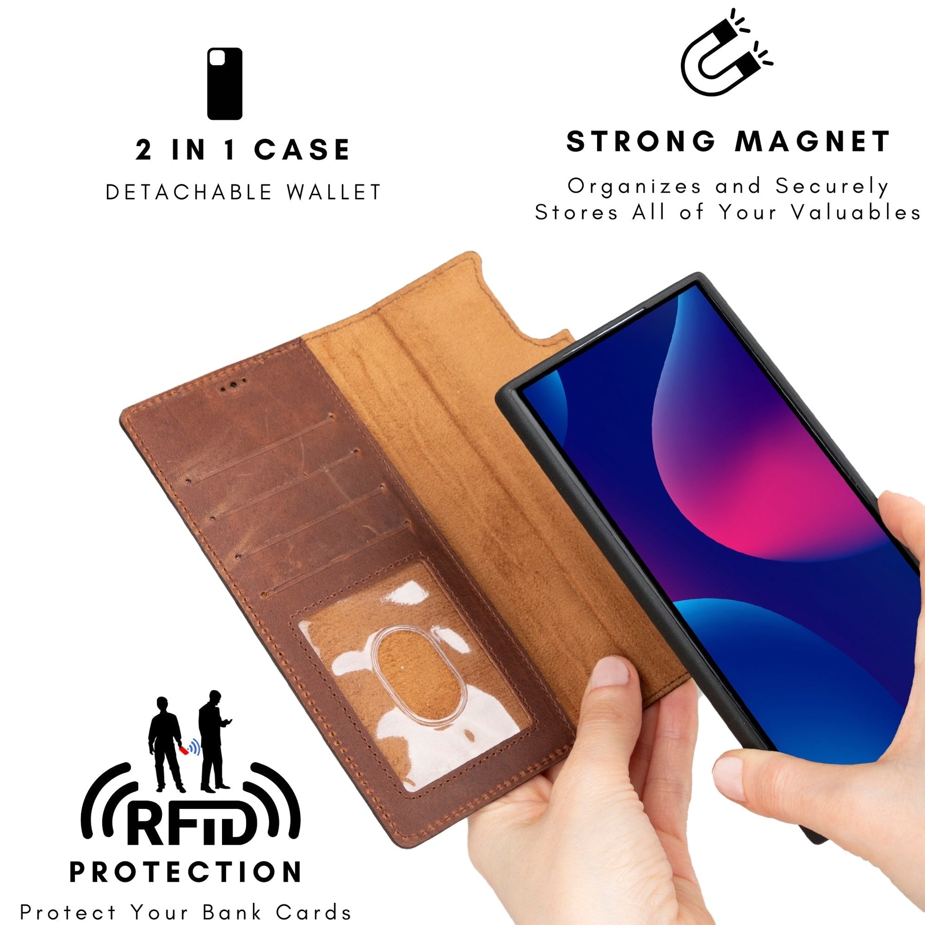 Buffalo Leather Samsung Galaxy S24 Ultra Wallet with Detachable Case