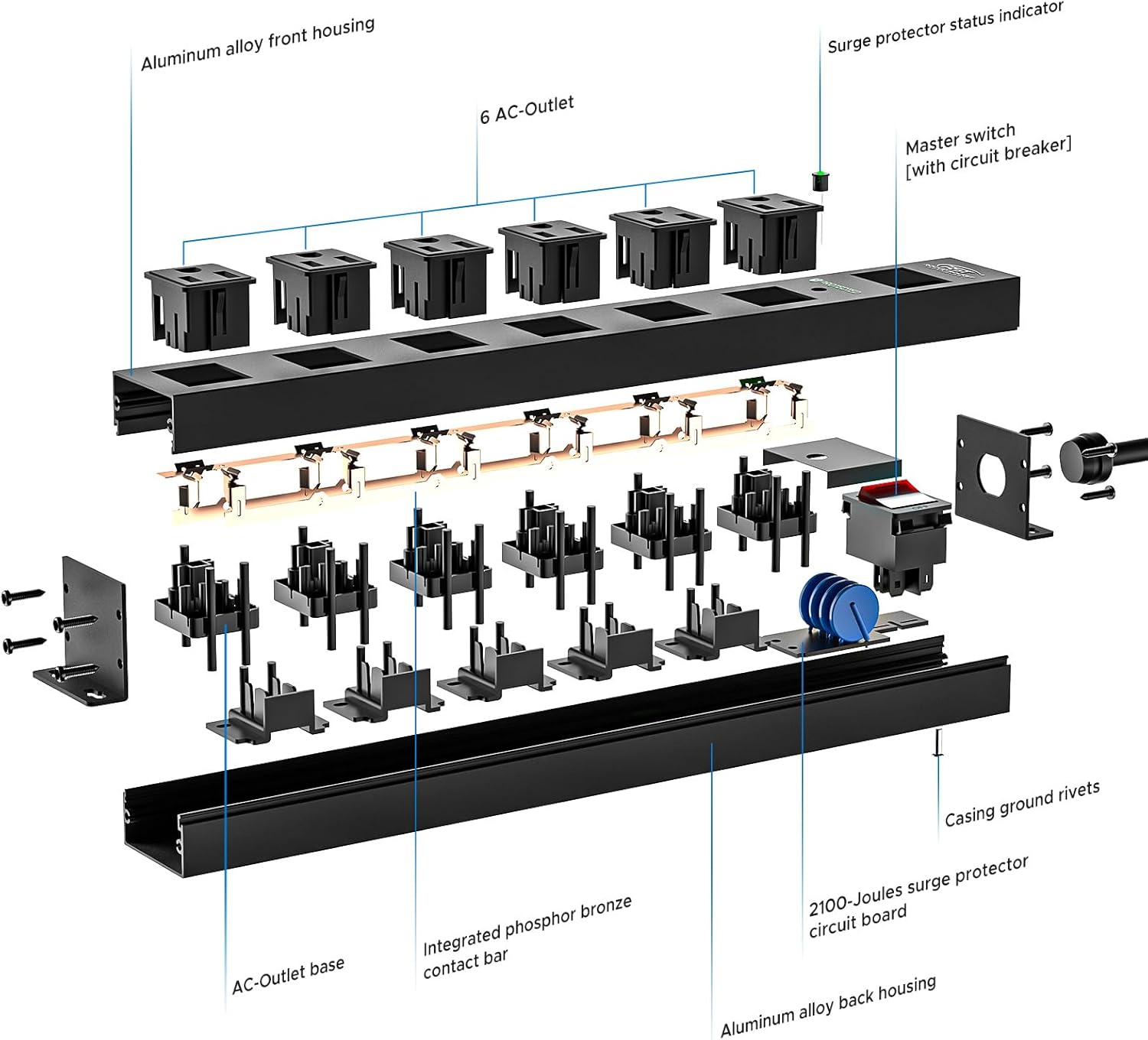 • All-Round Protection: Offers 2100 joules of protection against surges, spikes, or outages. A 15 Amp circuit breaker reacts instantly to catastrophic events and overloads, providing SGS Certified maximum protection. Keep your electronics safe with reliable surge protection.