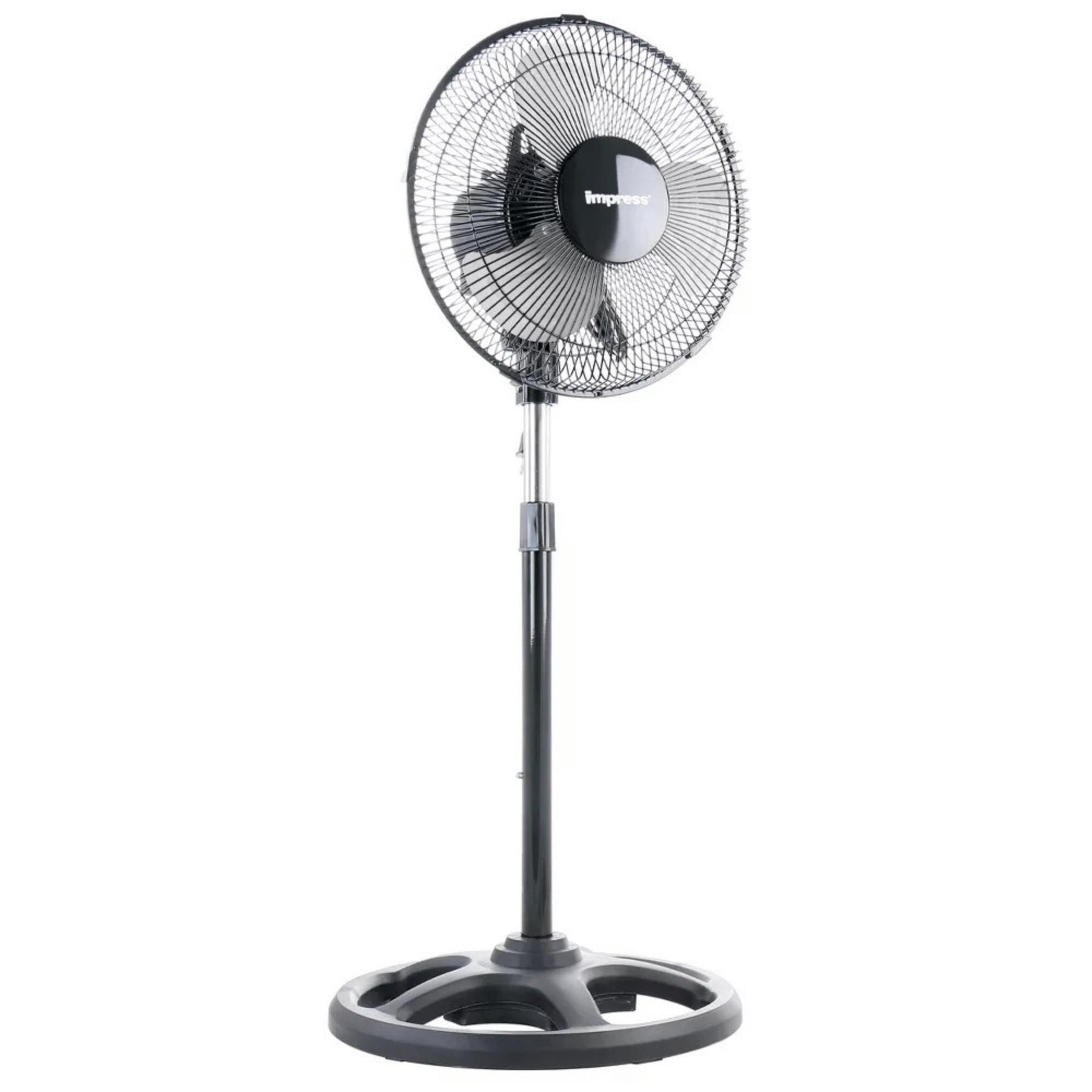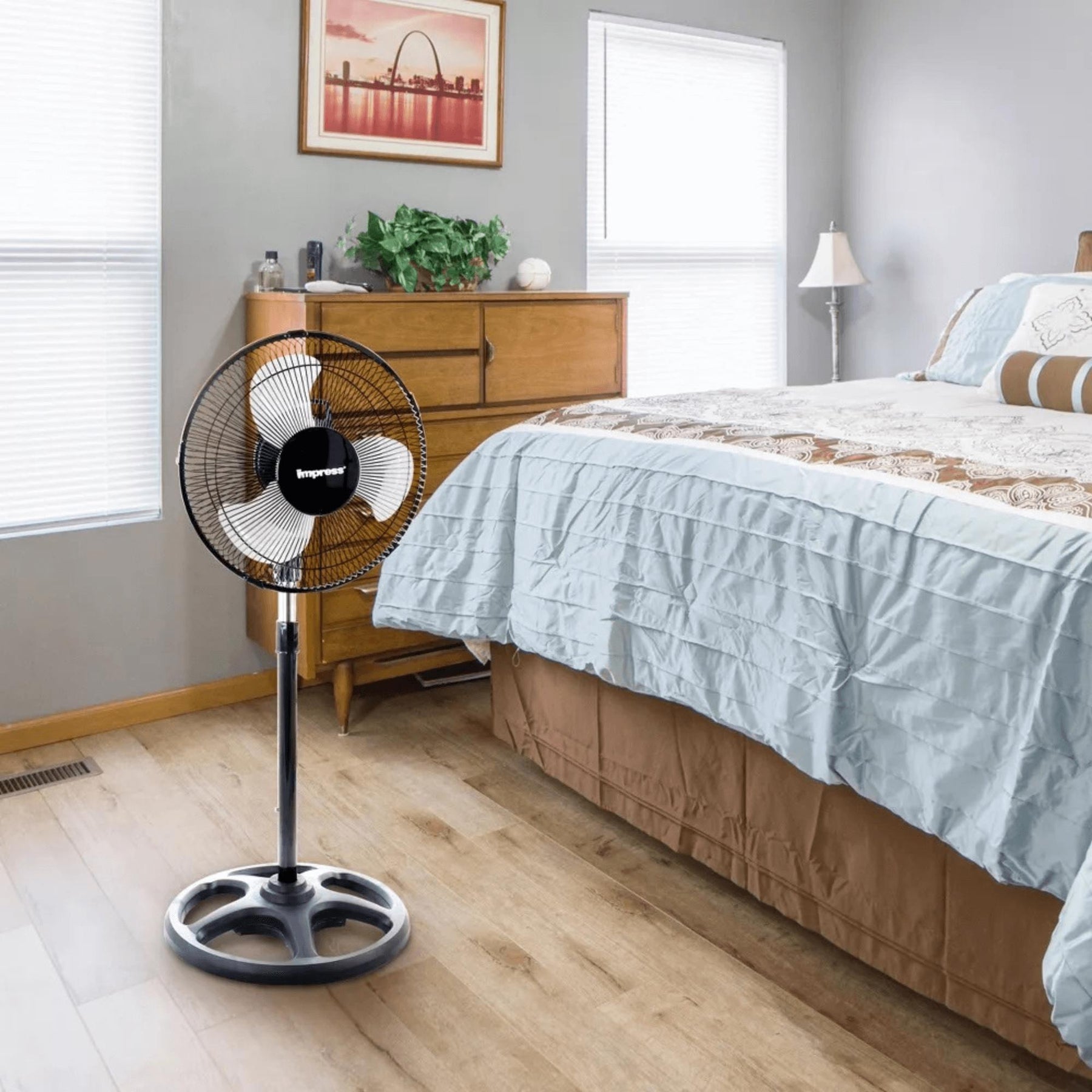 Meet the Impress Mighty Mite 10-Inch Oscillating Standing Fan with Metal Blades—a compact, portable cooling solution designed for small spaces, desks, and bedrooms. With a built-in handle, three speeds, and 90-degree oscillation, it delivers targeted airflow without turning your room into a wind tunnel.