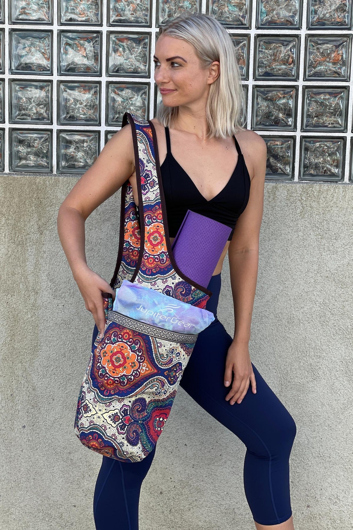 Crafted to be breathable, durable, and versatile, this bag is perfect for carrying your mat plus accessories like blocks, straps, towels, and more. Whether you’re heading from home to the studio, gym, or a beach day, it’s designed to keep your gear organized and accessible. The comfortable shoulder strap and thoughtful embroidery add color and personality to a practical, reliable tote.