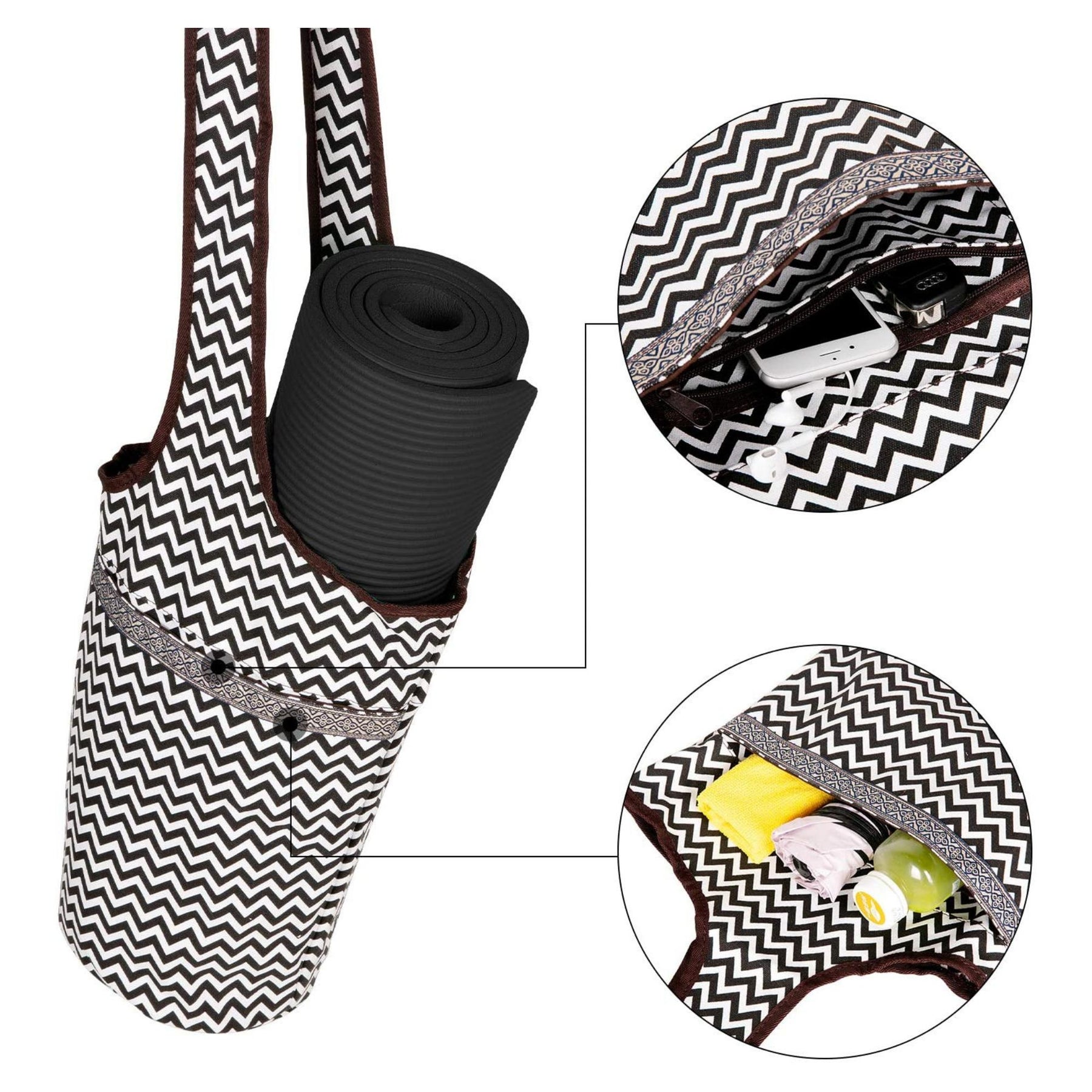 • PRACTICAL SIZE AND FUNCTIONALITY: The bag fits most standard and thick yoga mats while providing easy access to your yoga or Pilates mat. This tote-style mat bag comes in a convenient shape to easily house your yoga mat or exercise mat.
