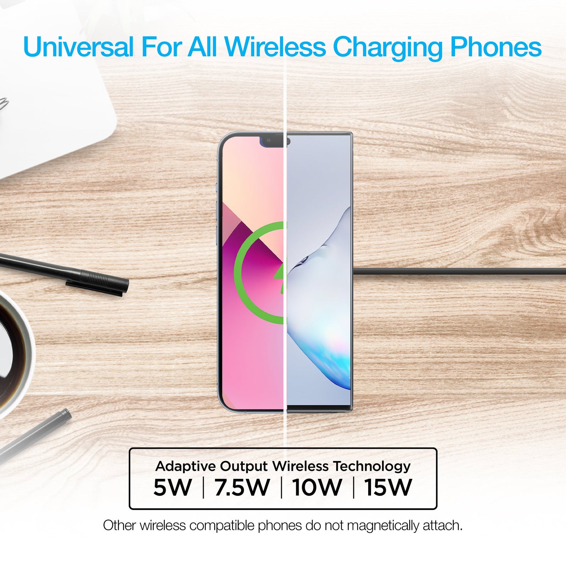 The Naztech Alloy Magnetic 15W Wireless Fast Charger makes fast wireless charging feel effortless. Perfect for iPhone 12 users and MagSafe cases, its strong magnets snap into place, delivering up to 15W of power so you get back to full faster than ever—and you can keep using your phone while it charges.