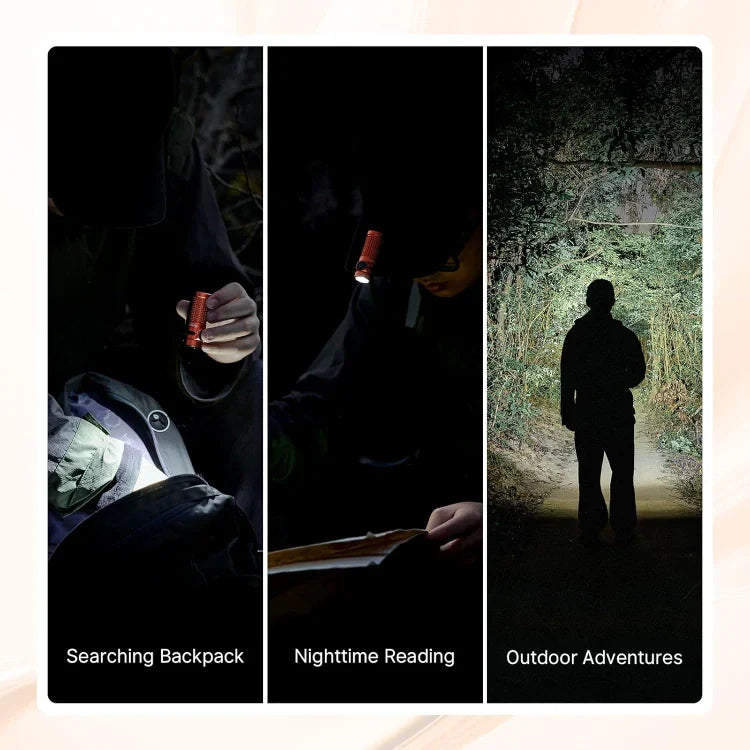 • Mini Outside, Mighty Inside — Almost shorter than your index finger. Delivers up to 1,300 lm and 170 m throw, with up to 30 days of runtime.