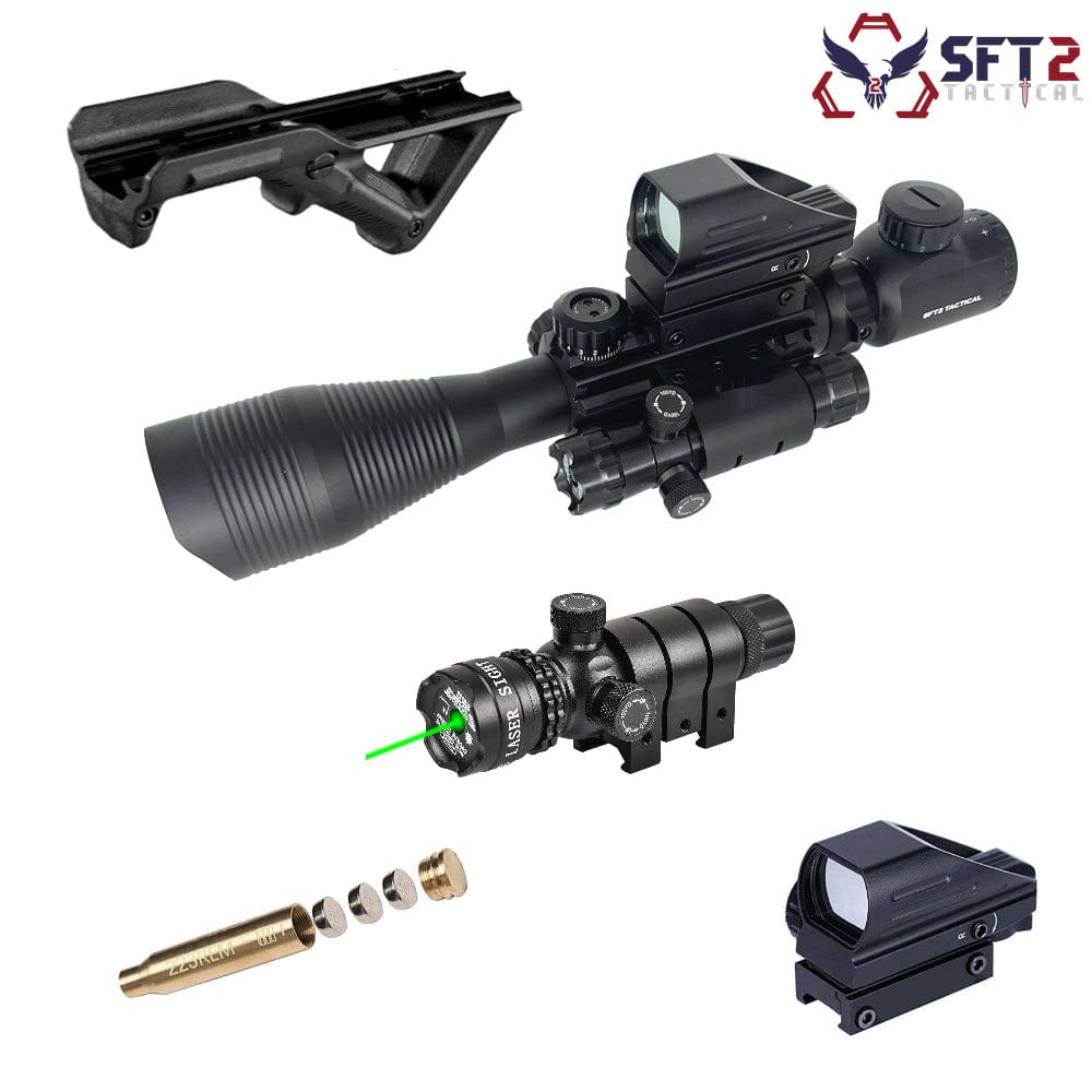 • SFT2 ModScope: Choose from 4-12x or 4-16x configurations, each equipped with a compact holographic red dot mounted on top for fast transitions between magnified and unmagnified sight pictures. Fully nitrogen-purged and built from durable materials, this scope delivers crystal-clear image quality, impressive light transmission, and reliable performance across a range of conditions. Optional selectable red or green laser provides an additional aiming reference for convenience and versatility.