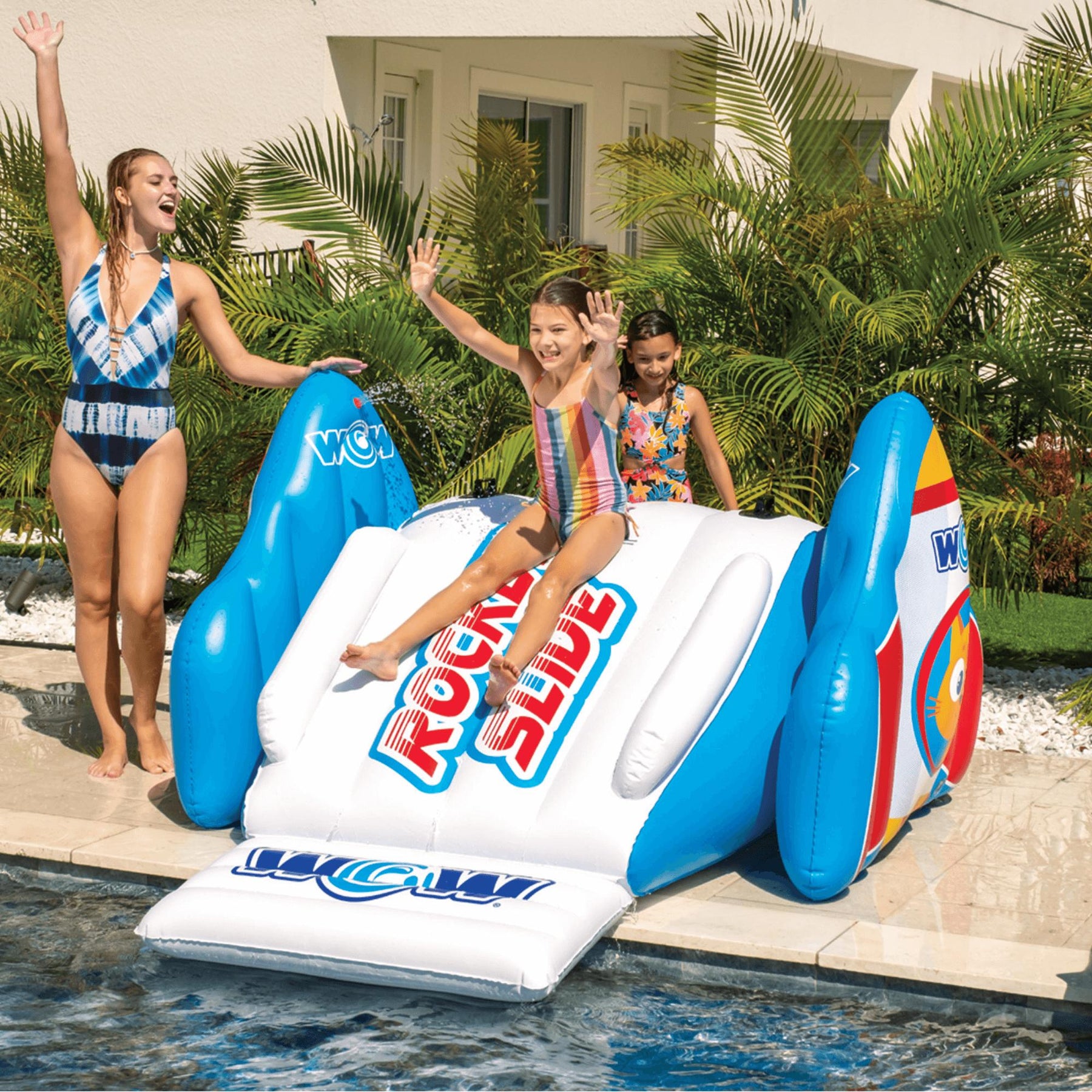 Blast off into backyard fun with the WOW Watersports Rocket Pool Slide. Built for families who want high splash-factor and easy setup, this heavy-duty inflatable slide brings the pool, dock, or backyard party to life.