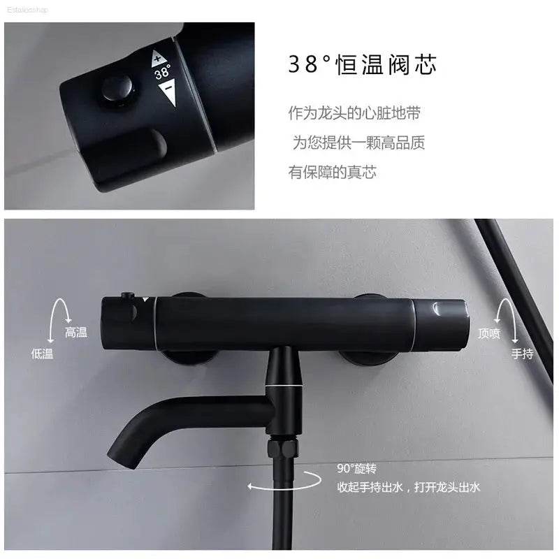 Experience unmatched refinement and superior performance with the Elegant Black Chrome Thermostatic Shower Faucet Set, a distinguished blend of luxury and functionality for today’s bathrooms. This premium bathroom fixture has been meticulously engineered to elevate your showering routine, offering advanced thermostatic temperature regulation alongside a striking black chrome finish that complements a wide range of interior styles.