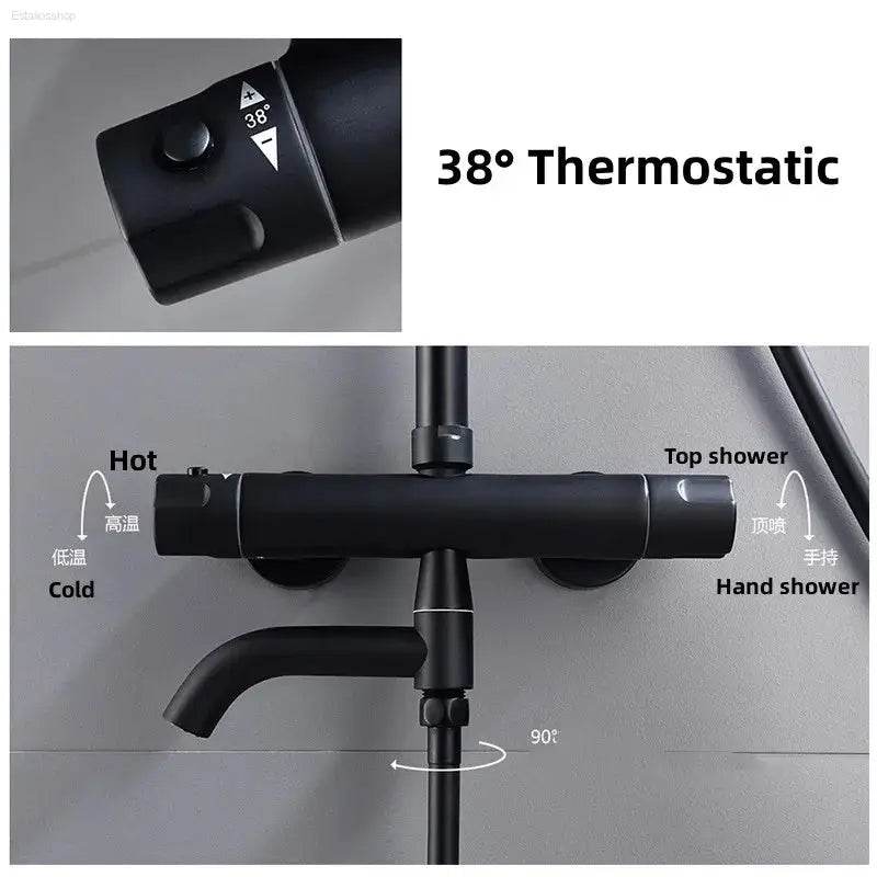 Elegant Black Chrome Thermostatic Shower Faucet Set with Precise Temperature Control for Modern Bathrooms