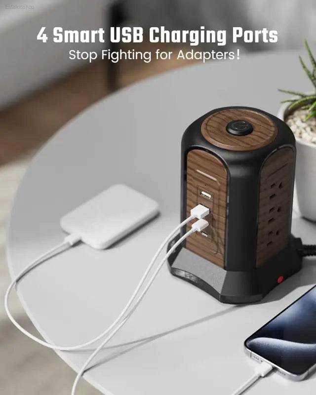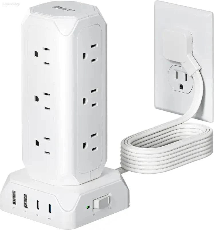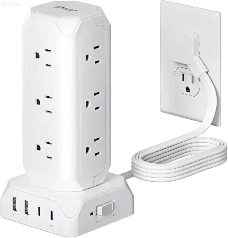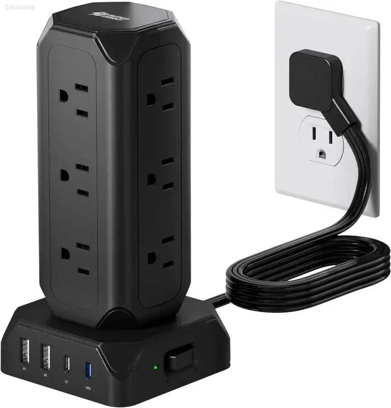 Meet the Premium Surge Protector Power Strip Tower—a vertical charging hub with 9 outlets and 4 USB ports, crafted for homes and busy offices. It delivers reliable, high-speed charging while slashing desk clutter.