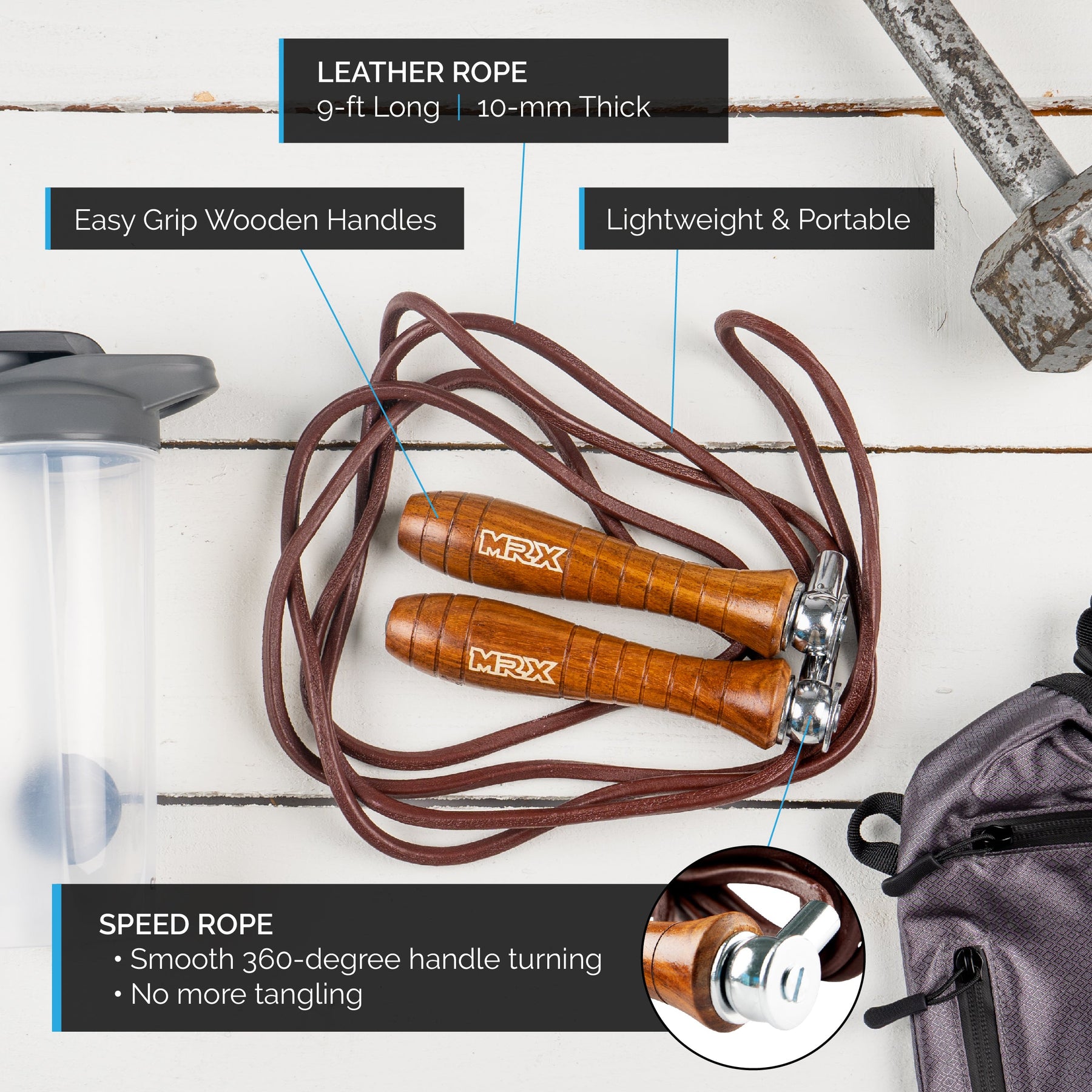MRX Weighted Leather Jump Rope Heavy Duty Wood Handle