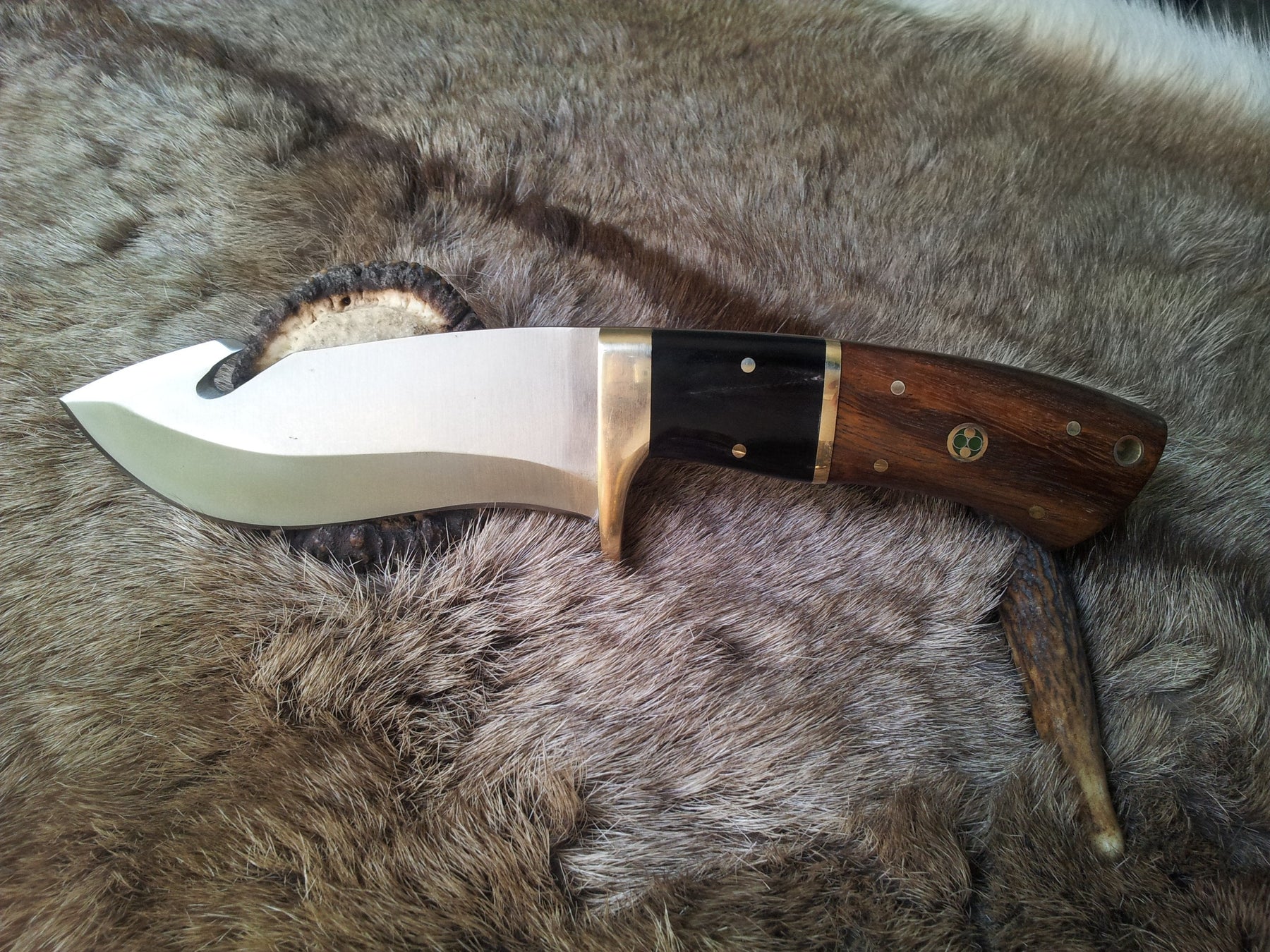 Fixed Blade Guthook Knife - 1095 High Carbon Steel & Rosewood/Buffalo Horn Handle