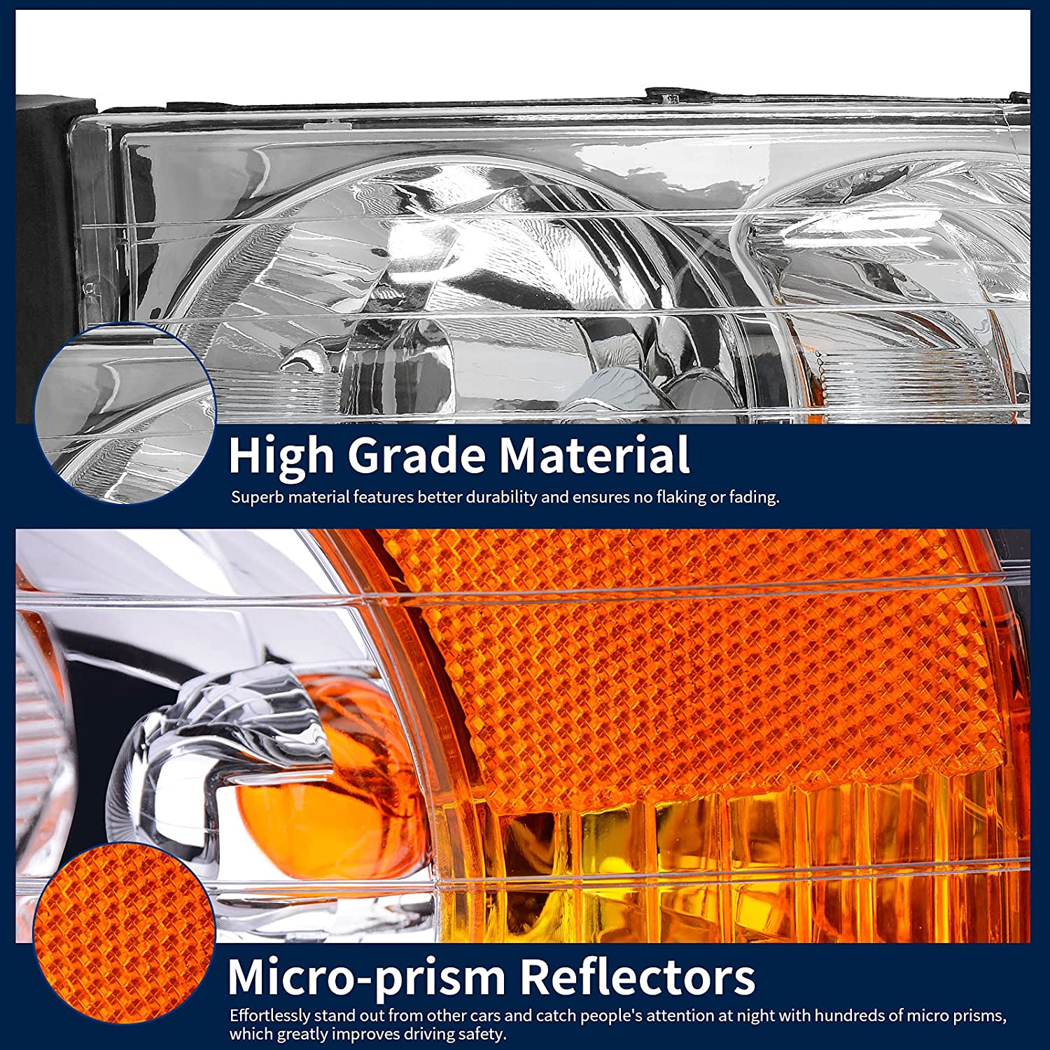 • Size: (Left + Right) Side Chrome Amber Reflector HeadLight