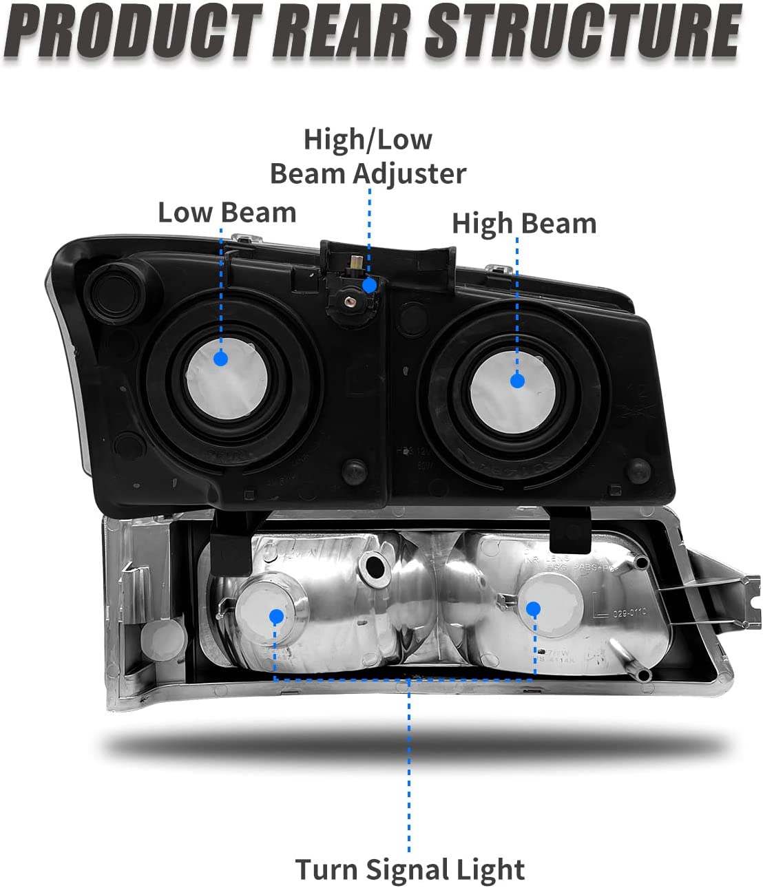 Upgrade your Chevy with the Adcarlights 2003-2006 Silverado Headlight Assembly — a 2-piece replacement set for Silverado 1500/1500 HD / 2500 HD / 3500 HD and Avalanche 1500/2500. Clear chrome lens with amber reflector for both driver and passenger sides, designed to restore brightness and curb appeal without the OEM price tag.