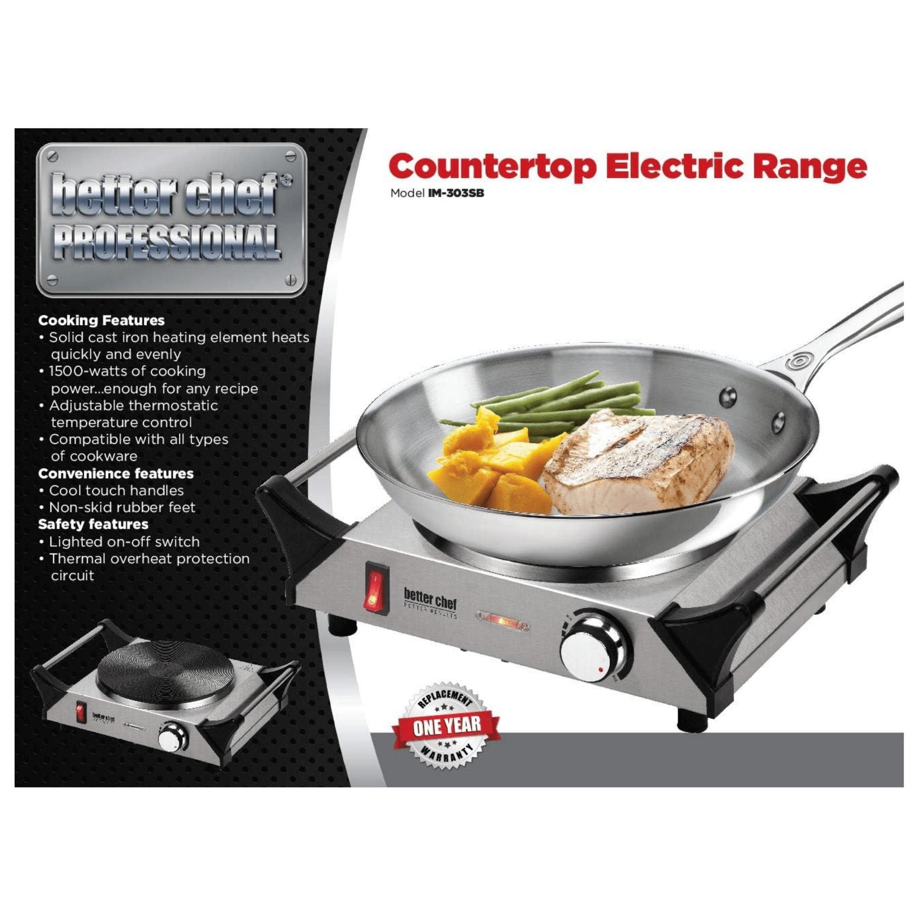 Meet the Better Chef Stainless Steel Electric Solid Element Countertop Single Burner—a compact, reliable cooking helper for dorms, offices, or small kitchens. With a solid-plate design for even heating and an adjustable knob, it delivers dependable results—and yes, it includes a safety on-off switch to keep you sane in the kitchen.