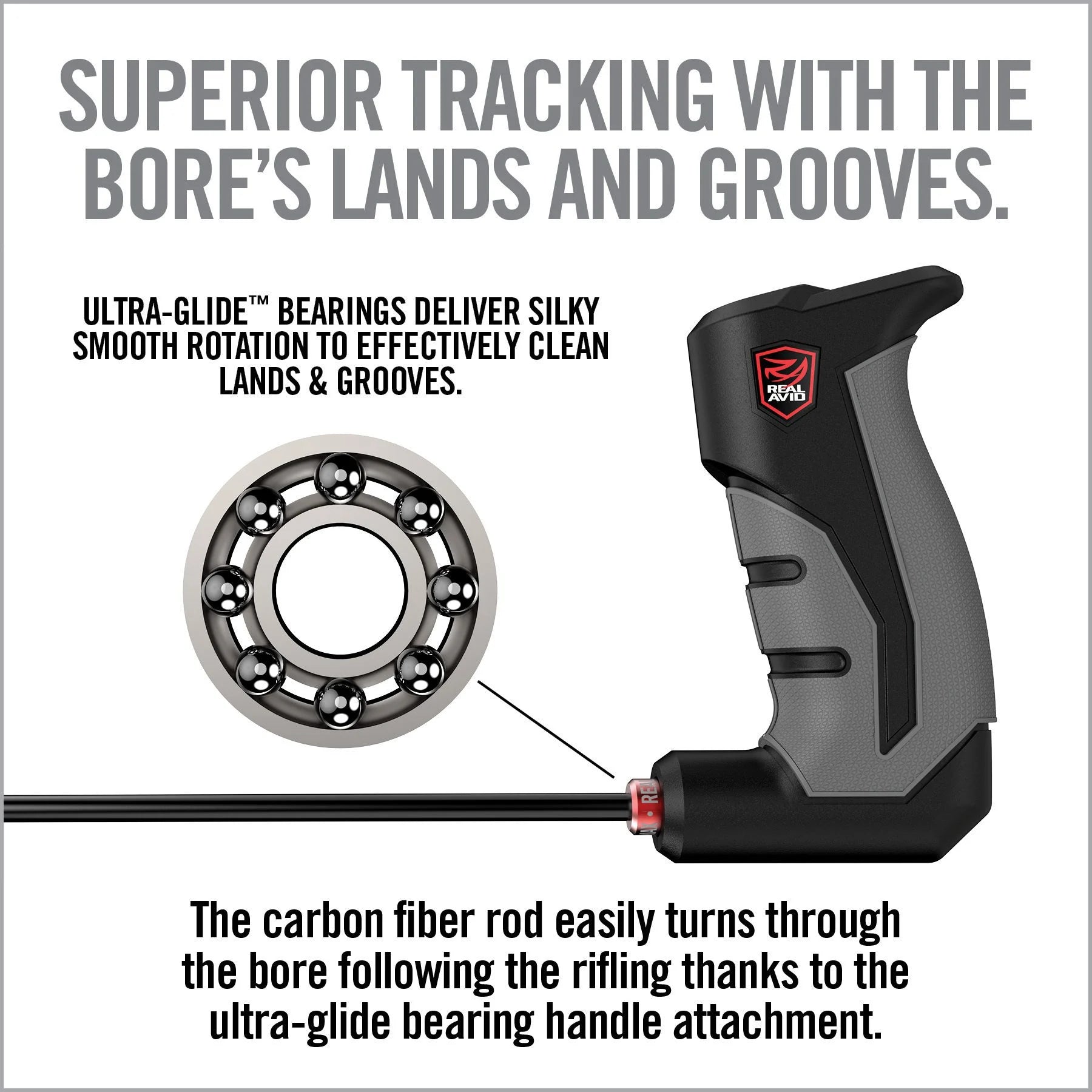• 9" Carbon Fiber rod with an ultra-glide bearing for smooth rotation through the bore, following rifling to effectively clean lands and grooves.