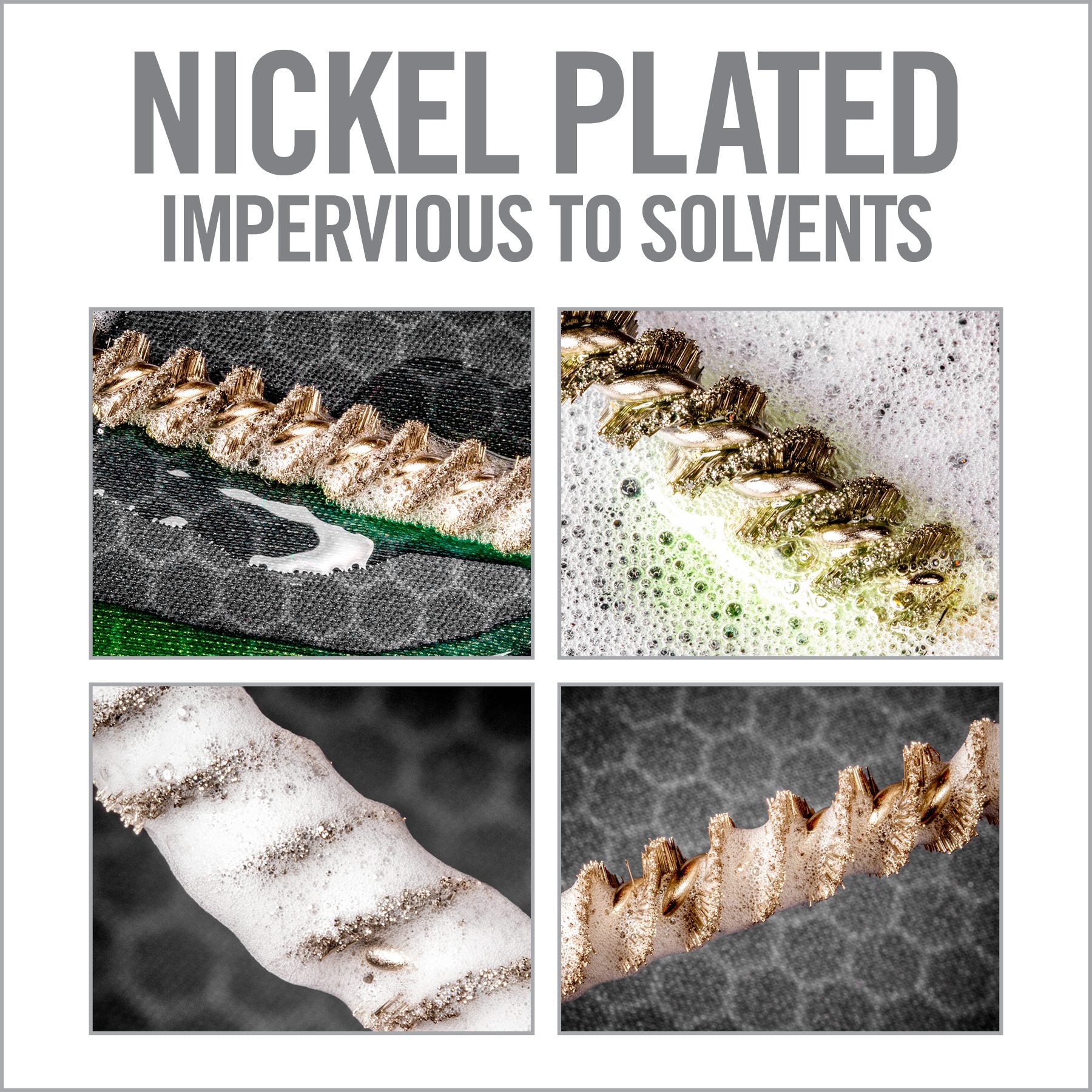 • Stiff, nickel-plated phosphor bronze bristles reduce chemical breakdown from solvents and extend the life of the brush.