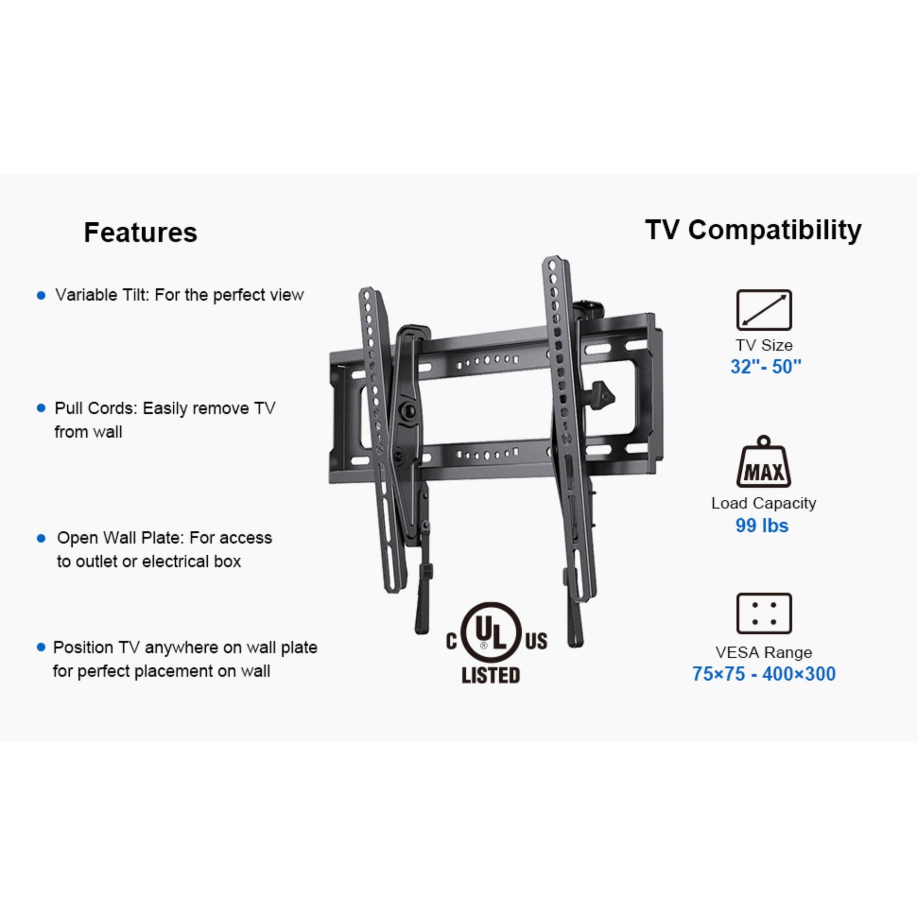 The ErgoAV ERMTM2-01B Tilt Mount is a lean, strong mounting solution built for 32" to 50" TVs (up to 99 lbs). It tilts to cut glare and enhance your viewing, while a clever latching system makes attaching and removing your TV actually painless.