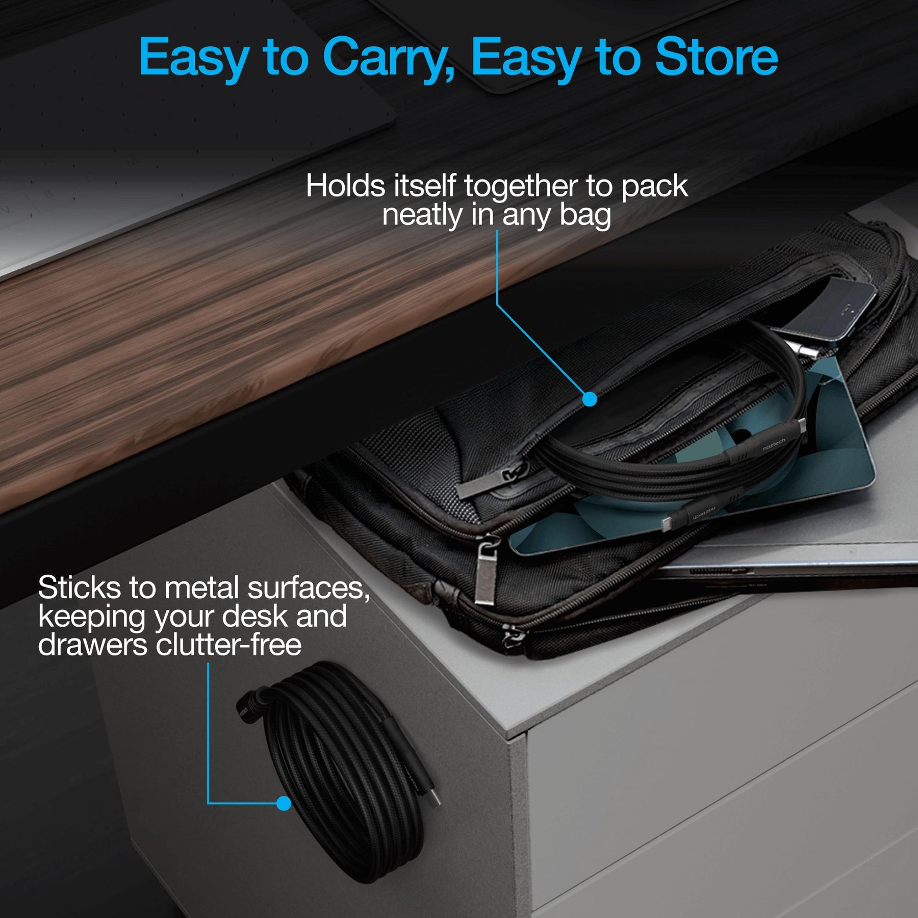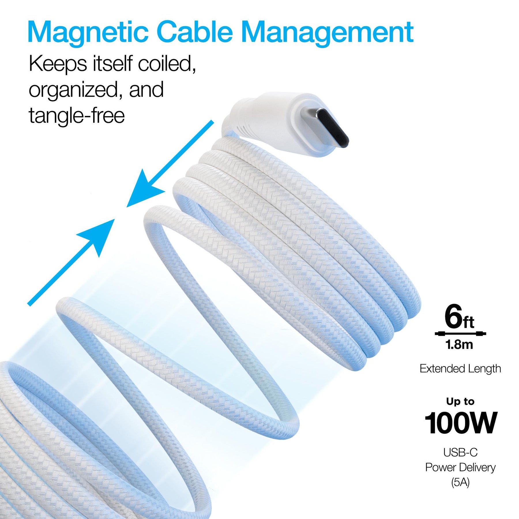 Meet the Naztech REcoil USB-C to USB-C Magnetic Cable 6ft — a magnetic, hassle-free charging ally designed for laptops, tablets, phones, and everyone who hates cable chaos. It stays coiled when you don’t need it and lies flat when you do, keeping your workspace clean and efficient.
