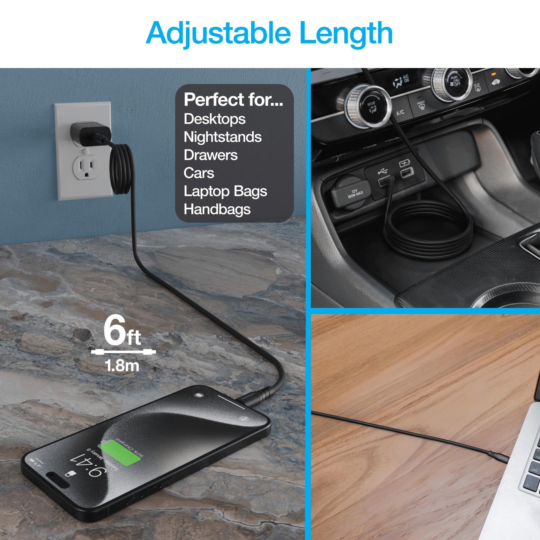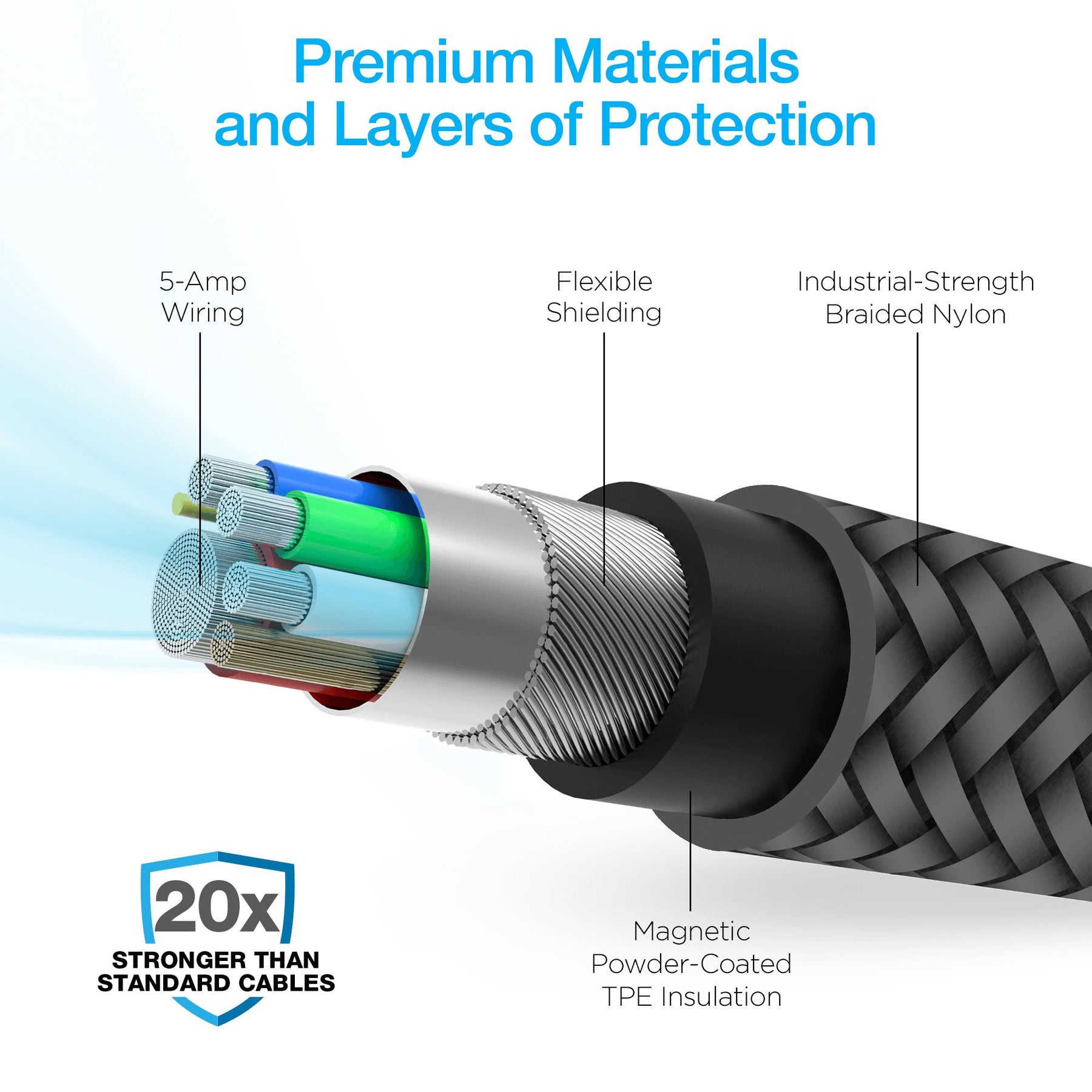 • Industrial-Strength Braided Nylon — 20X Stronger Than Standard Cables
