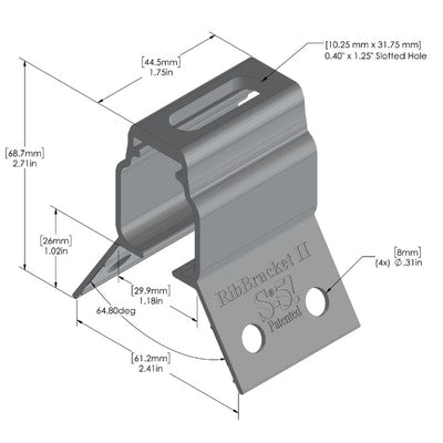 • Compatible RibBracket II top rib dimension range: 1 in +/- to 1 ¼ in +/- (25 mm to 32 mm).