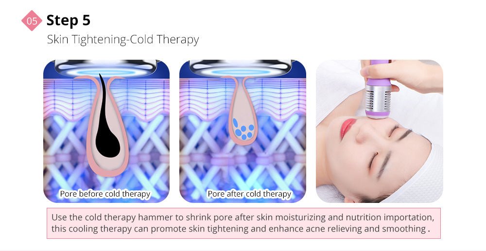 • Cold Hammer Therapy – Soothes skin, reduces redness, and refines pores.