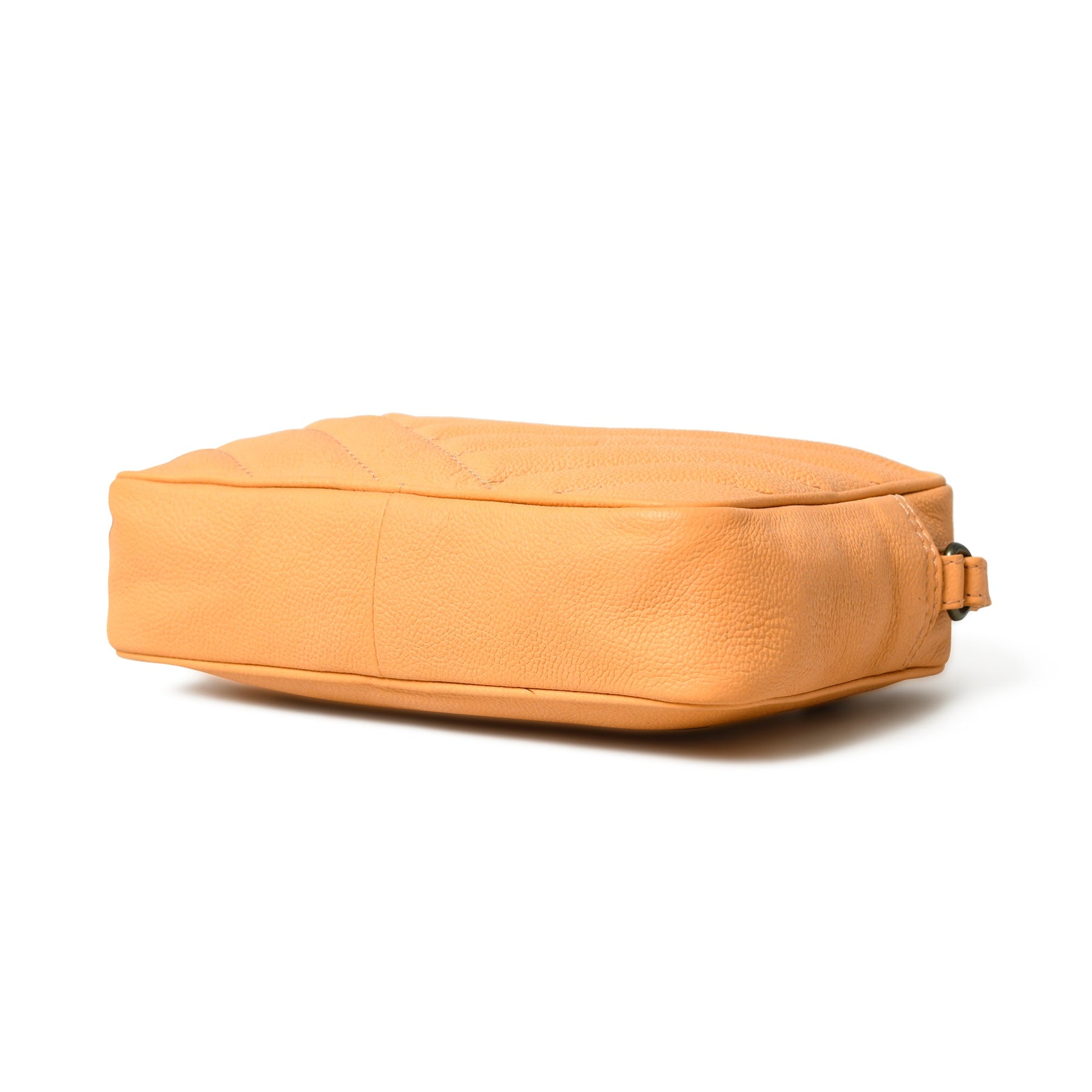 Introducing our Tan Quilted Shoulder Bag, a beacon of luxury and sustainability. This leather crossbody sling bag boasts a quilted texture with parallel lines, hand-stitched for a touch of opulence.