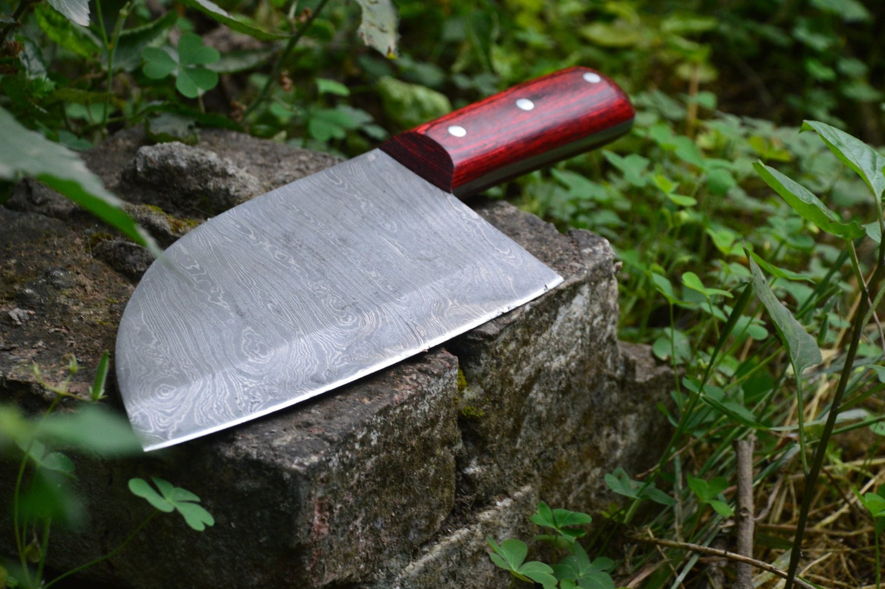 Meet the Full Tang Custom Handmade Damascus Steel Chef / Chopper Knife — the rugged, no-nonsense blade built for outdoor cooks, bushcraft fans, and anyone who treats chopping like a sport. If you want a knife that doubles as a wilderness companion and a kitchen workhorse, this one delivers with a grin and a splash of Damascus flair.