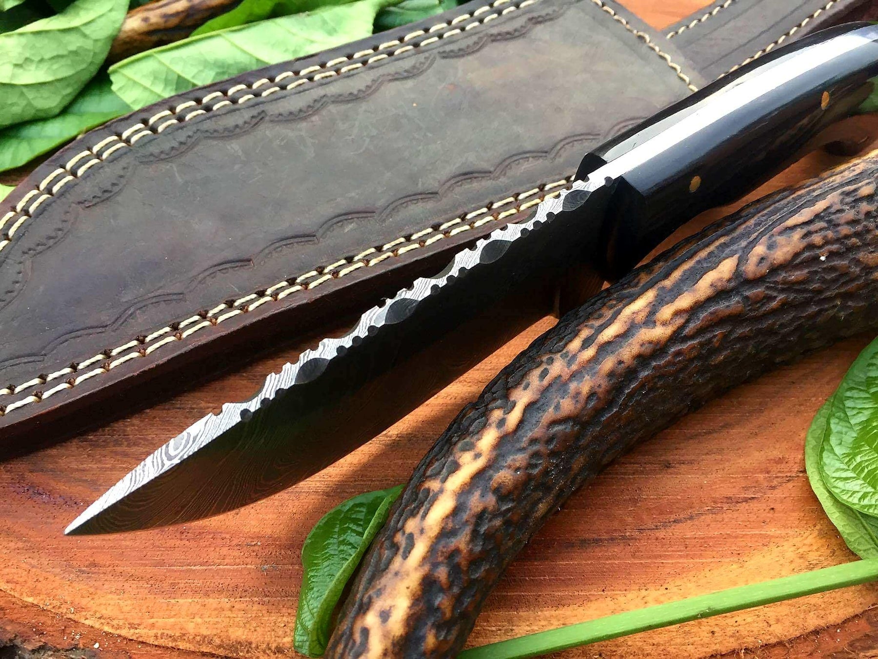 Meet the Full Tang Custom Handmade Damascus Steel Hunting Skinning Knife — the reliable ally for hunters, outdoorsmen, and anyone who values an edge that sticks around. This knife is built for skinning and field tasks, merging traditional craftsmanship with practical performance.