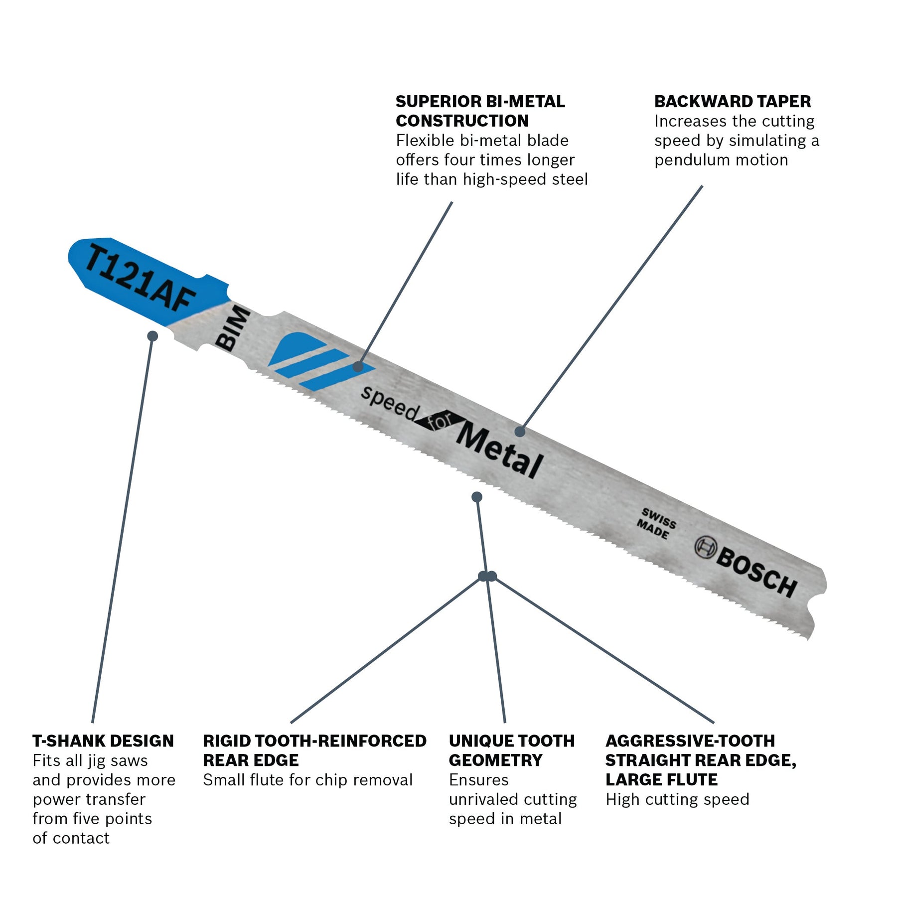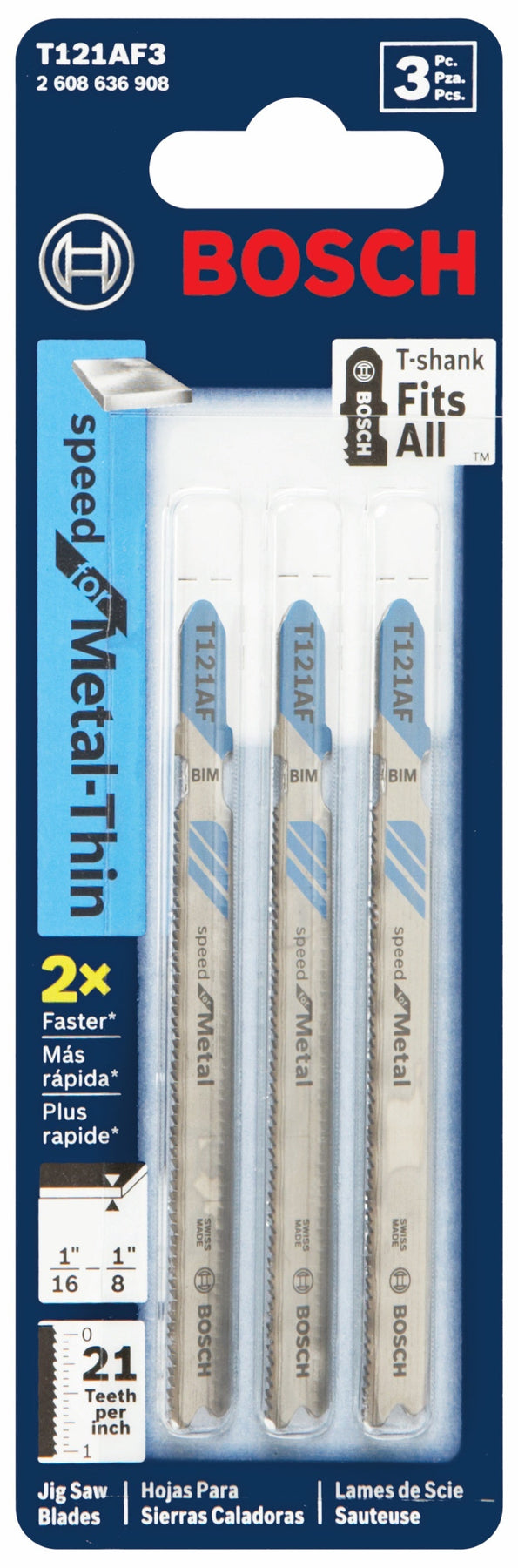 BOSCH T121AF3 3 pc. 3-5/8 In. 21 TPI Speed for Metal T-Shank Jig Saw Blades