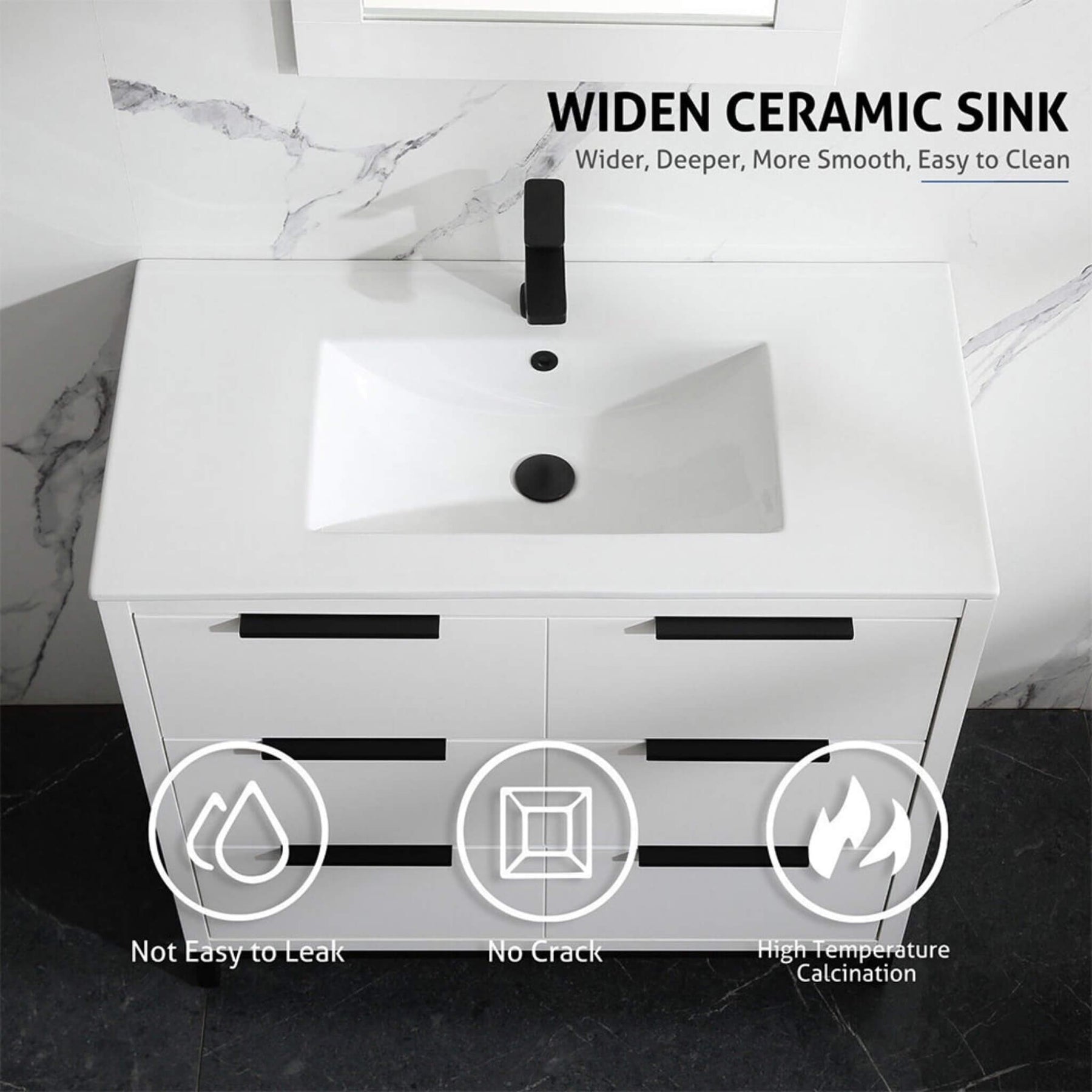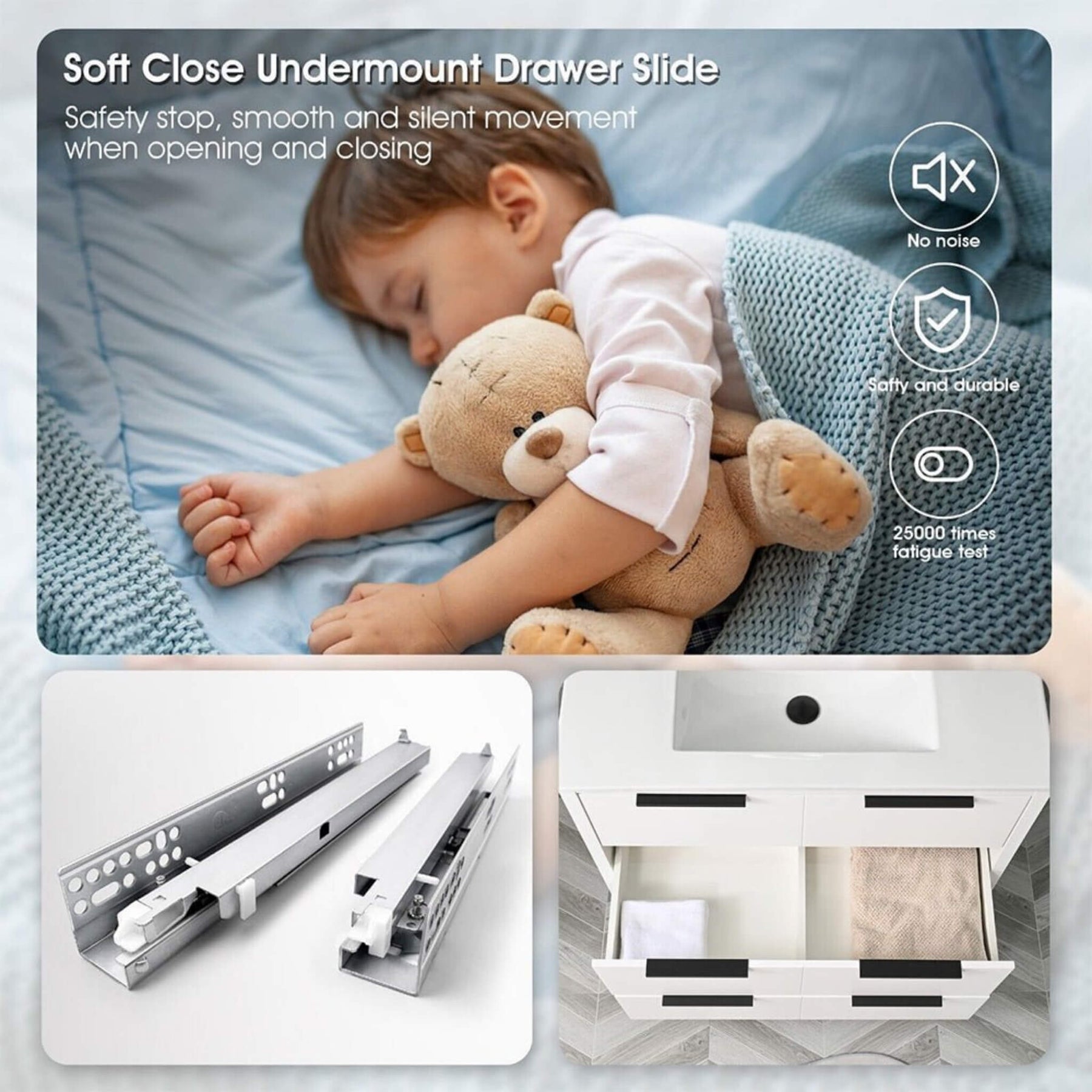 Designed with an eco-friendly paint coating and a smooth paint finish, this vanity is as easy to wipe down as it is on the eyes. The two ceramic sink bowls pair with a high-definition, anti-bacterial mirror to deliver a clean, contemporary look that resists stains and bacteria alike. Durable MDF drawer cabinets and soft-closing trails keep your bathroom serene and organized, so you won’t have to dive for storage every morning. Ready to upgrade your space? This 72" vanity set offers a stylish, low-maintenance solution that fits large baths and tight routines alike.