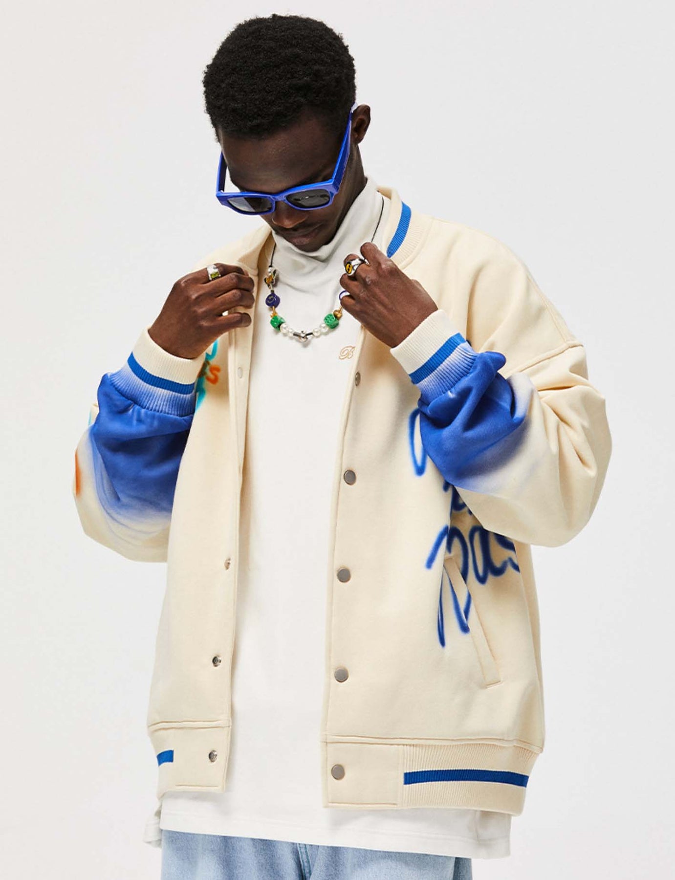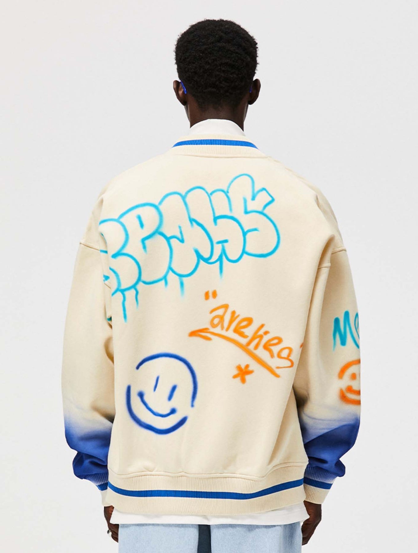 • Artwork: Doodle spray paint arts designs on the front and back of the jacket for urban and streetwear look.