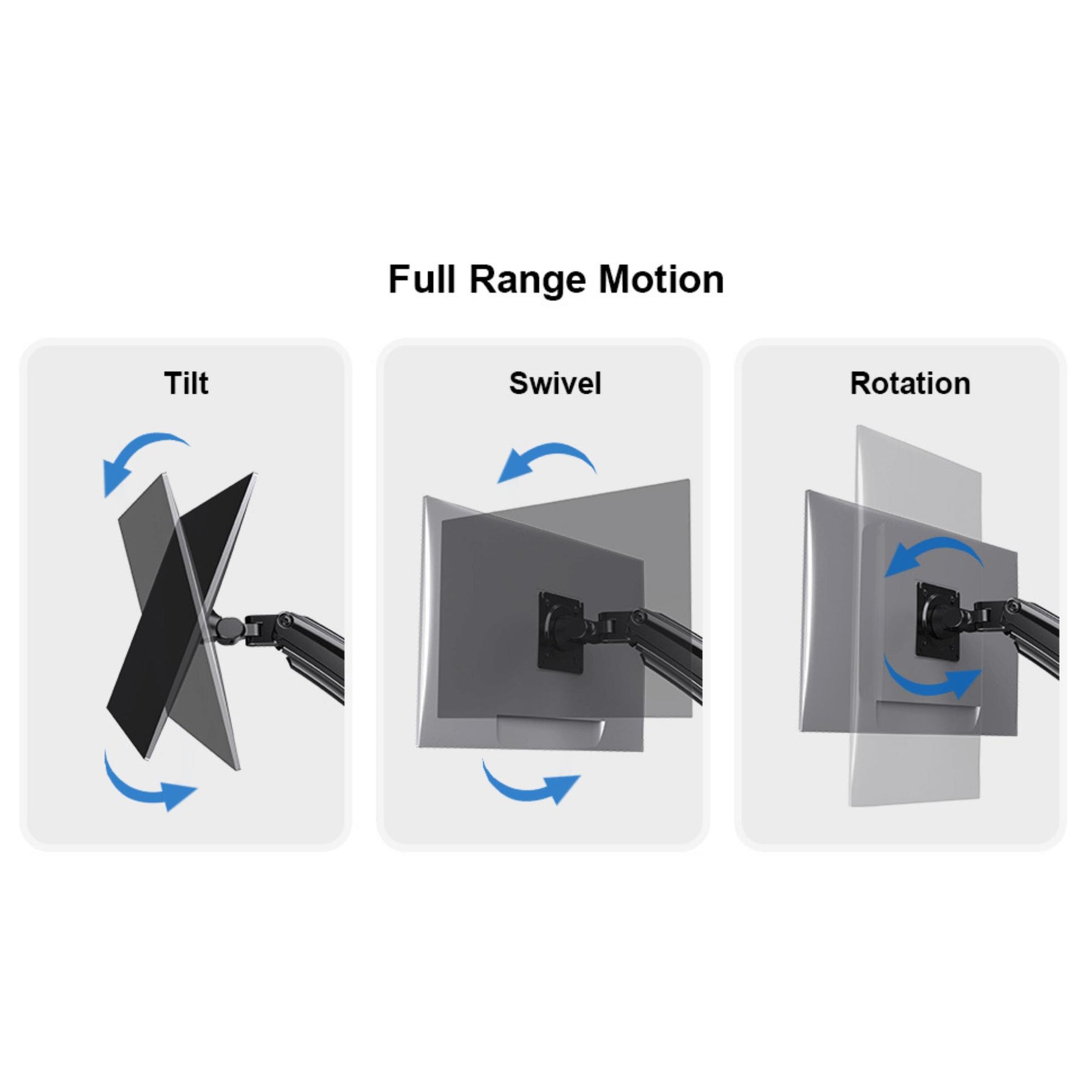 • Monitors and mounting: Compatible with monitors from 13" to 34" and up to 22 lbs per arm; supports a single monitor with a robust, space‑saving design.