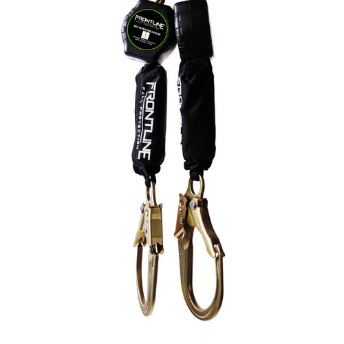 • Frontline RPA062R Aramid Fiber Web Twin Leg 6' SRL with Steel Rebar Hook Ends — self-retracting lifeline engineered for quick engagement and reliable performance in demanding environments.