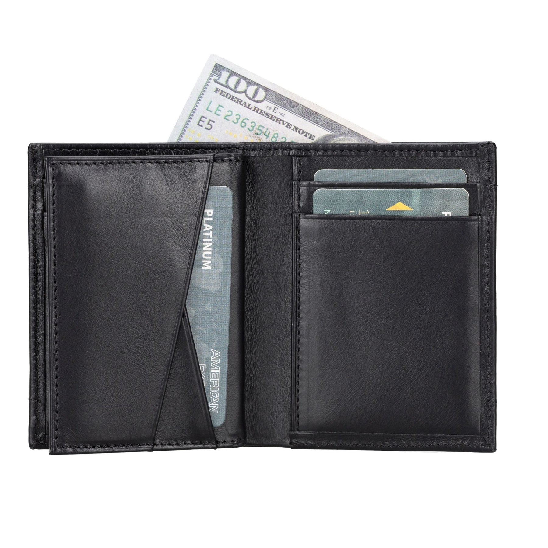 • Six slots for credit cards, one ID slot with a clear window, and a large bill compartment help you keep track of your cash and cards with ease.