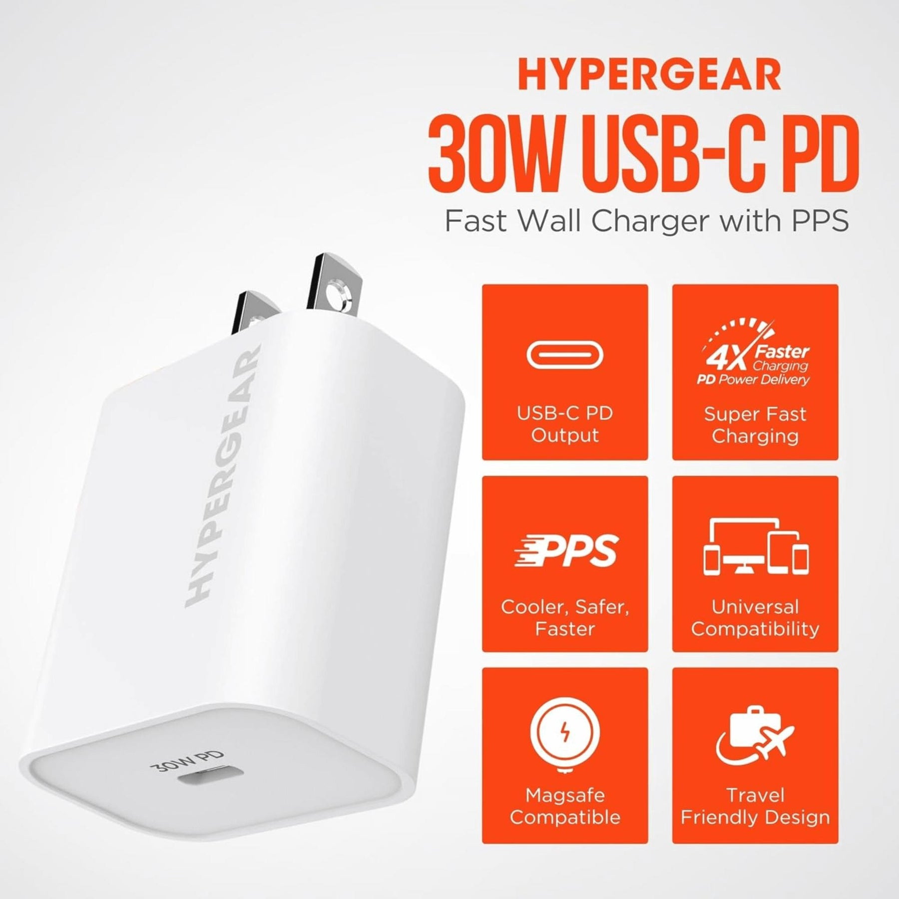 Power your devices at the speed of now with the HyperGear 30W USB-C PD Wall Charger. Compact enough for pockets, mighty enough to juice up iPhone, Galaxy, Pixel, and even MacBook Air—it’s the upgrade your everyday charging routine has been begging for.