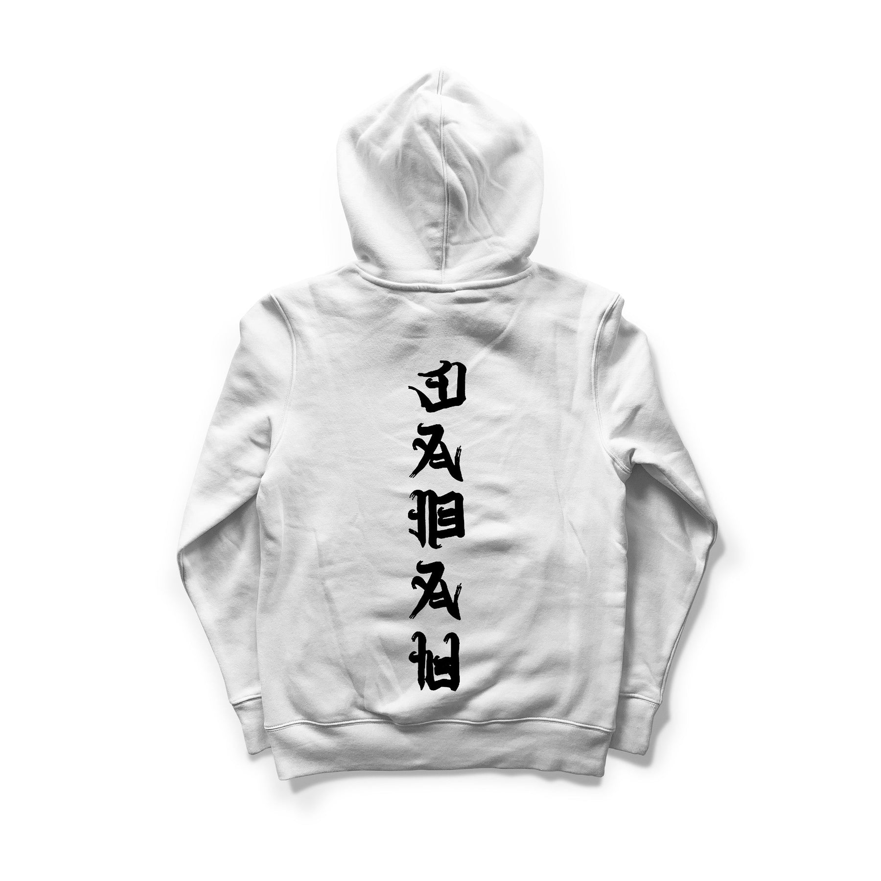 • Design: Features graphic gothic font designs on the front and back with no meaning