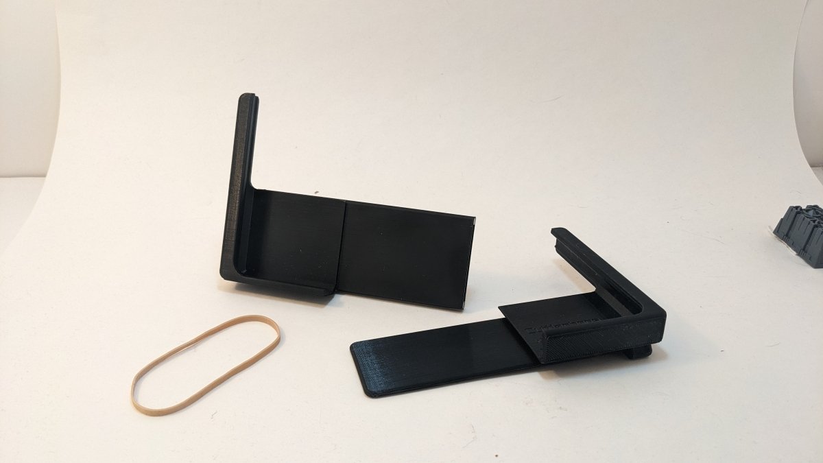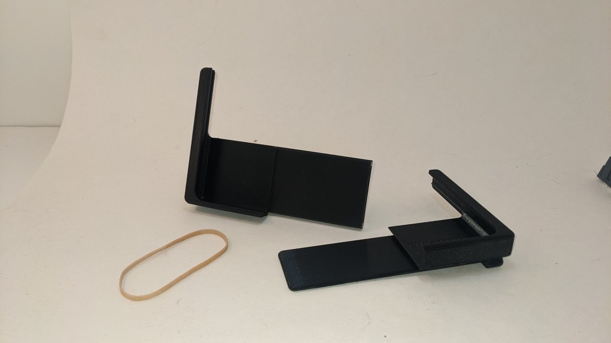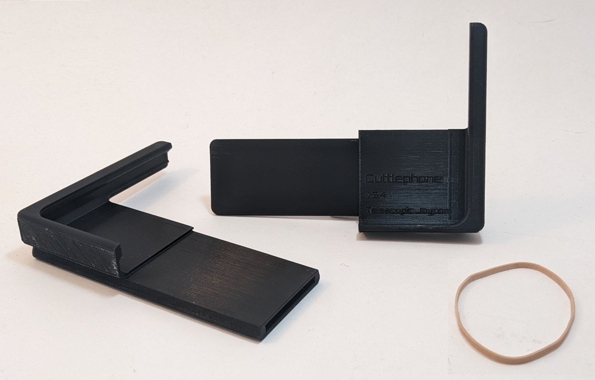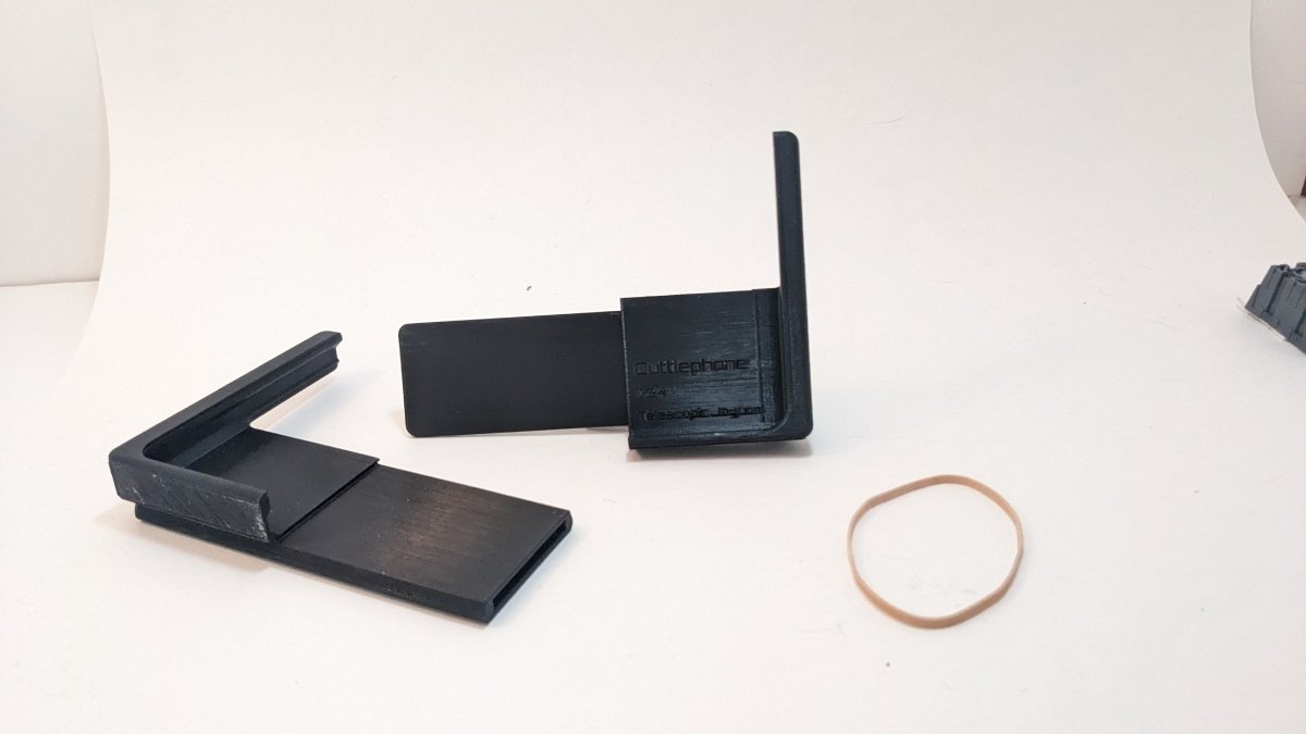 • Construction: The parts are 3D-printed and clamp together with a rubber band (included).