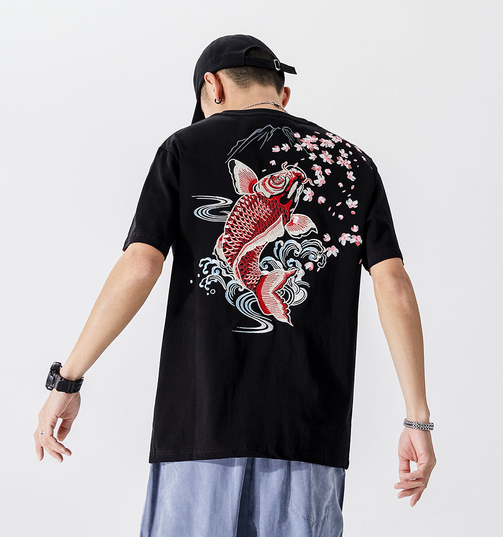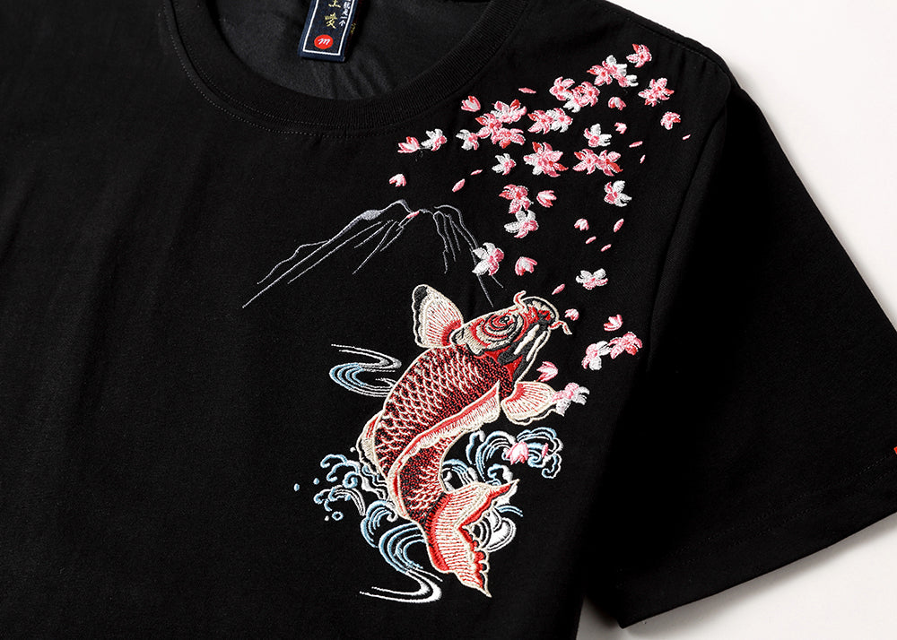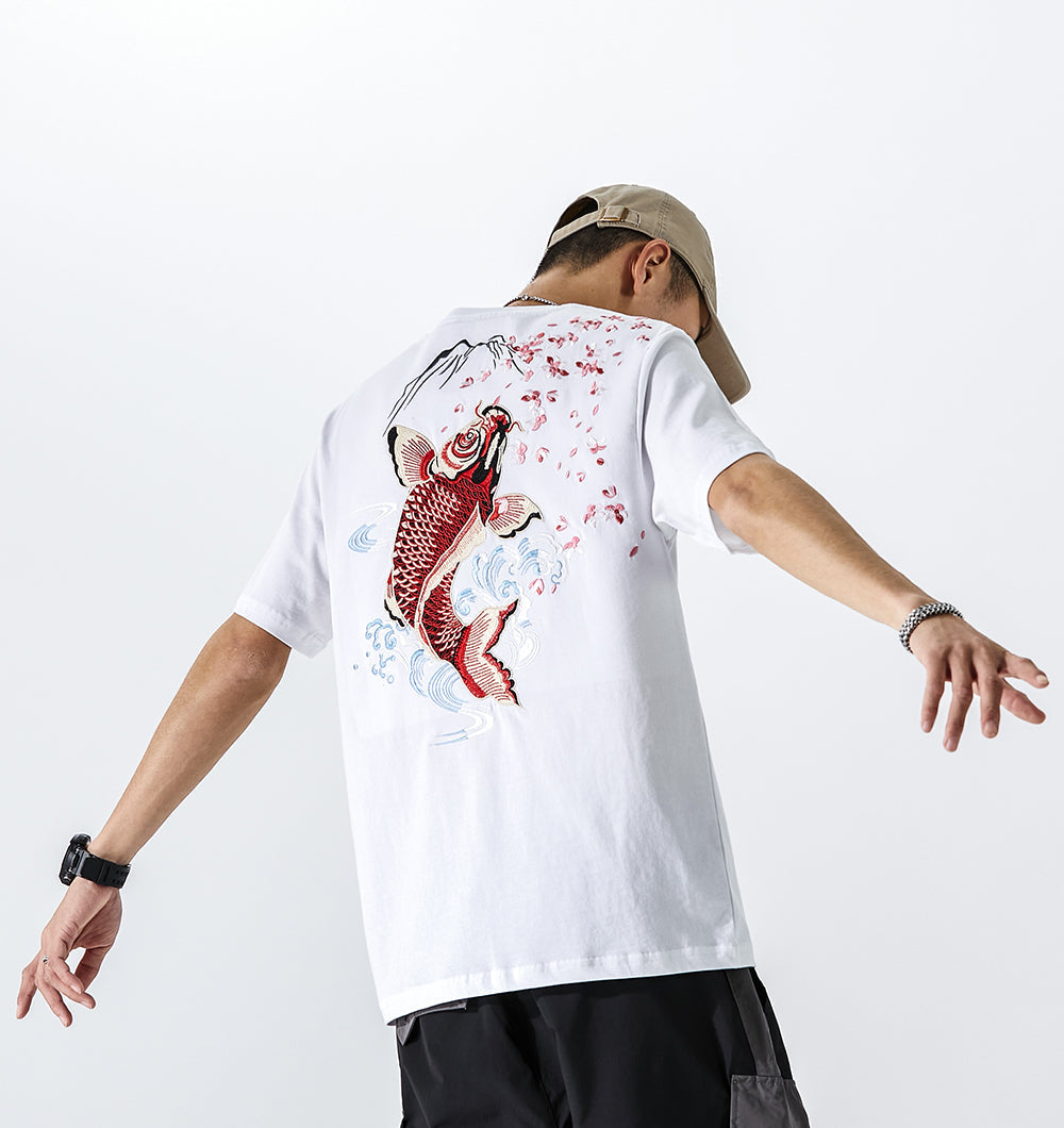 KH628 Red Koi Embroidery Tee—a premium tee built for fans of bold embroidery and lasting comfort. In a striking red, it features 100% embroidery design on the front and back and a soft, durable feel that lasts.