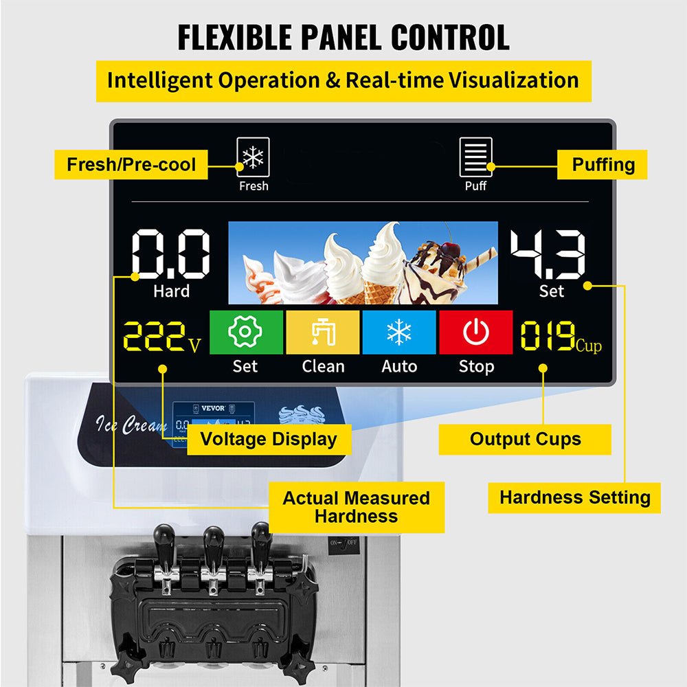 Large Double Hopper Commercial Soft Serve Ice Cream Maker Machine W/ 3 Flavors, 18-28 L/H (98371425)