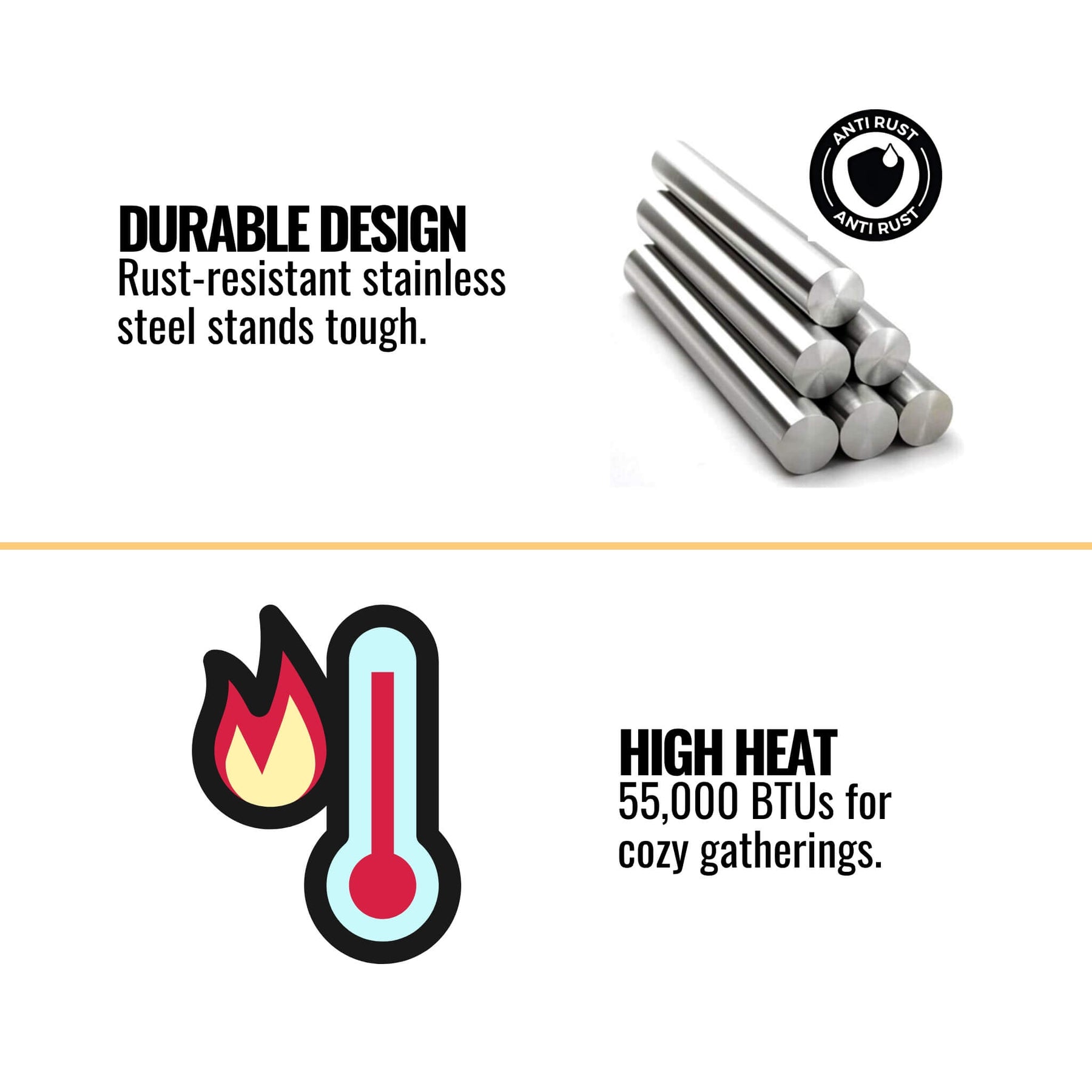 • Size & heat: 42-inch traditional outdoor gas fireplace with up to 55,000 BTUs of warmth for outdoor gatherings.
