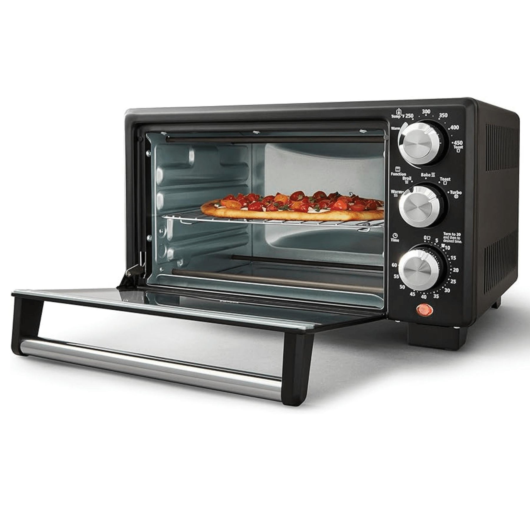 • Five Cooking Functions—toast, bake, broil, turbo, and warm—for everyday meals and quick snacks.