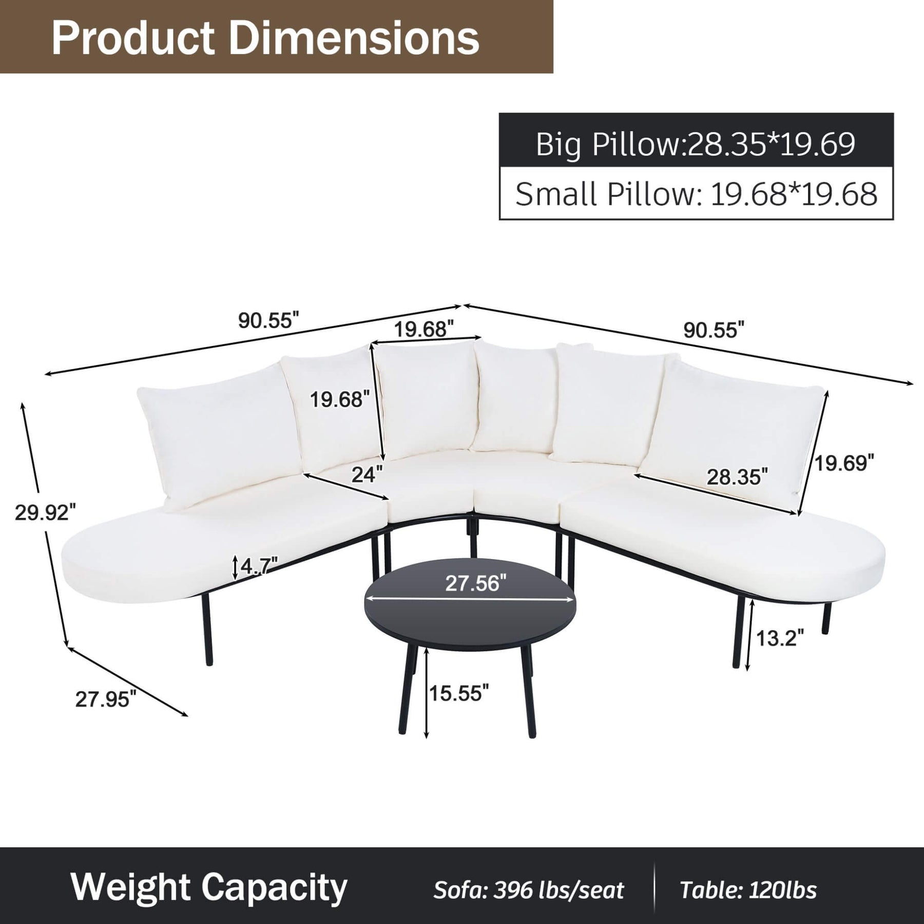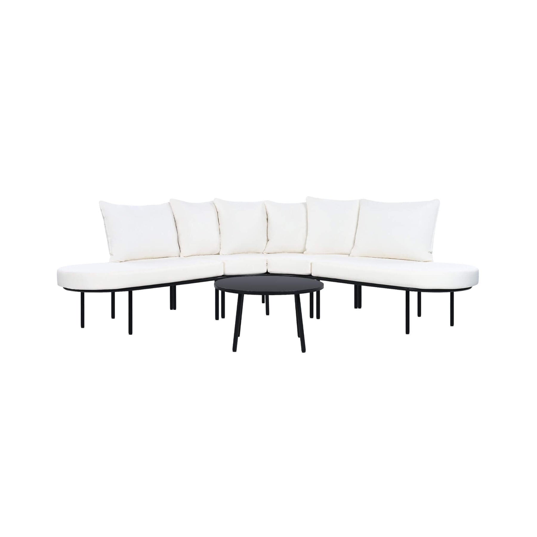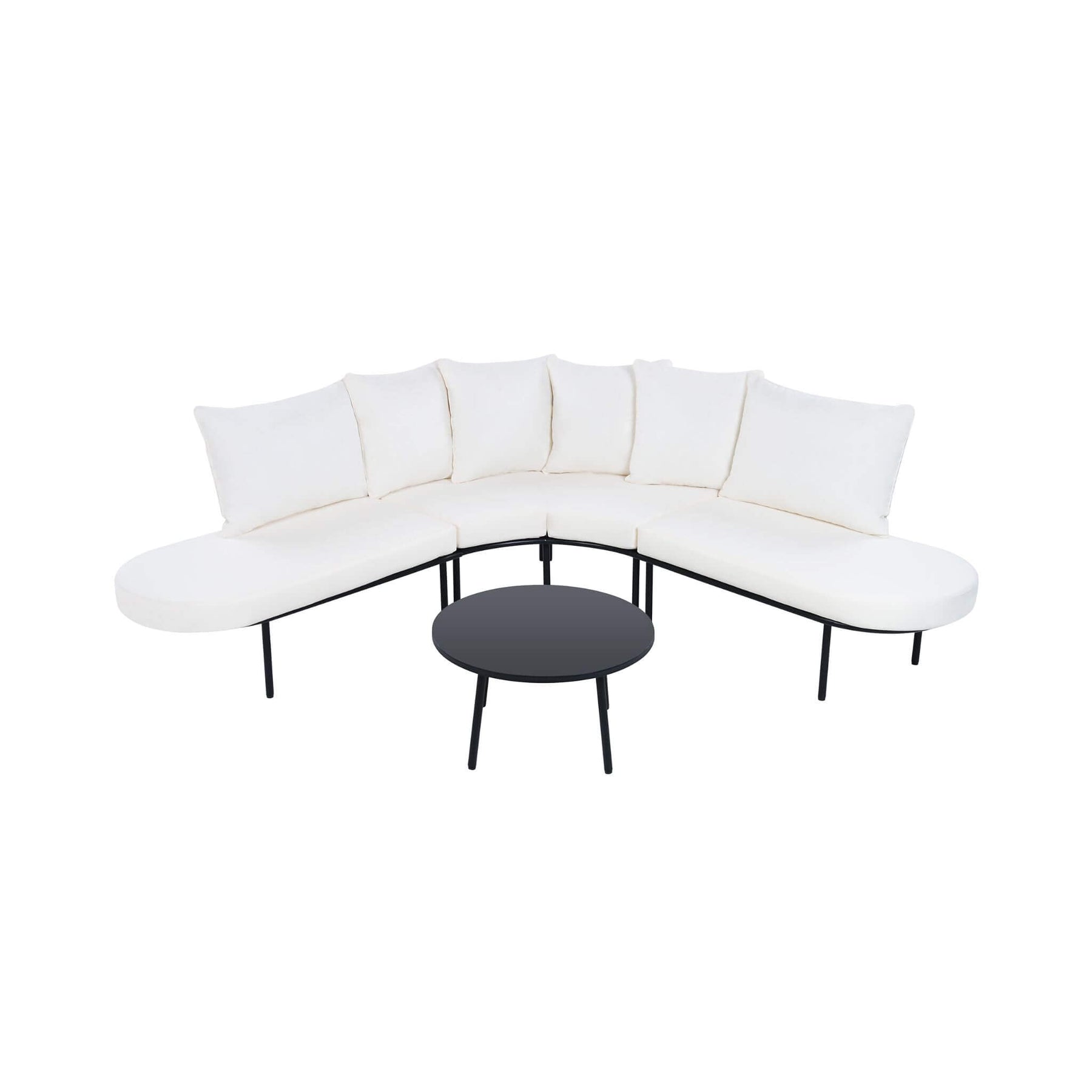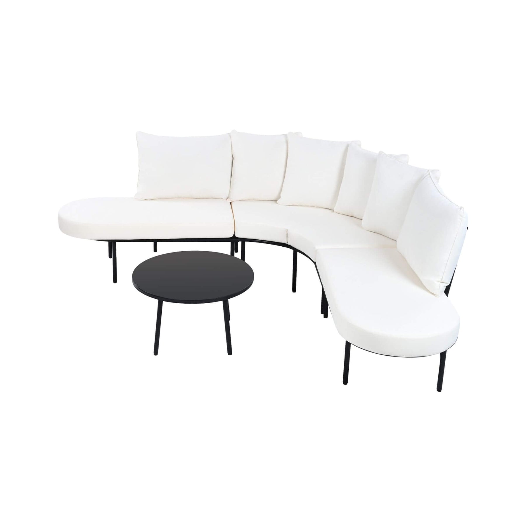 • Semi-circular half-moon design creates a generous, conversation-friendly seating area.