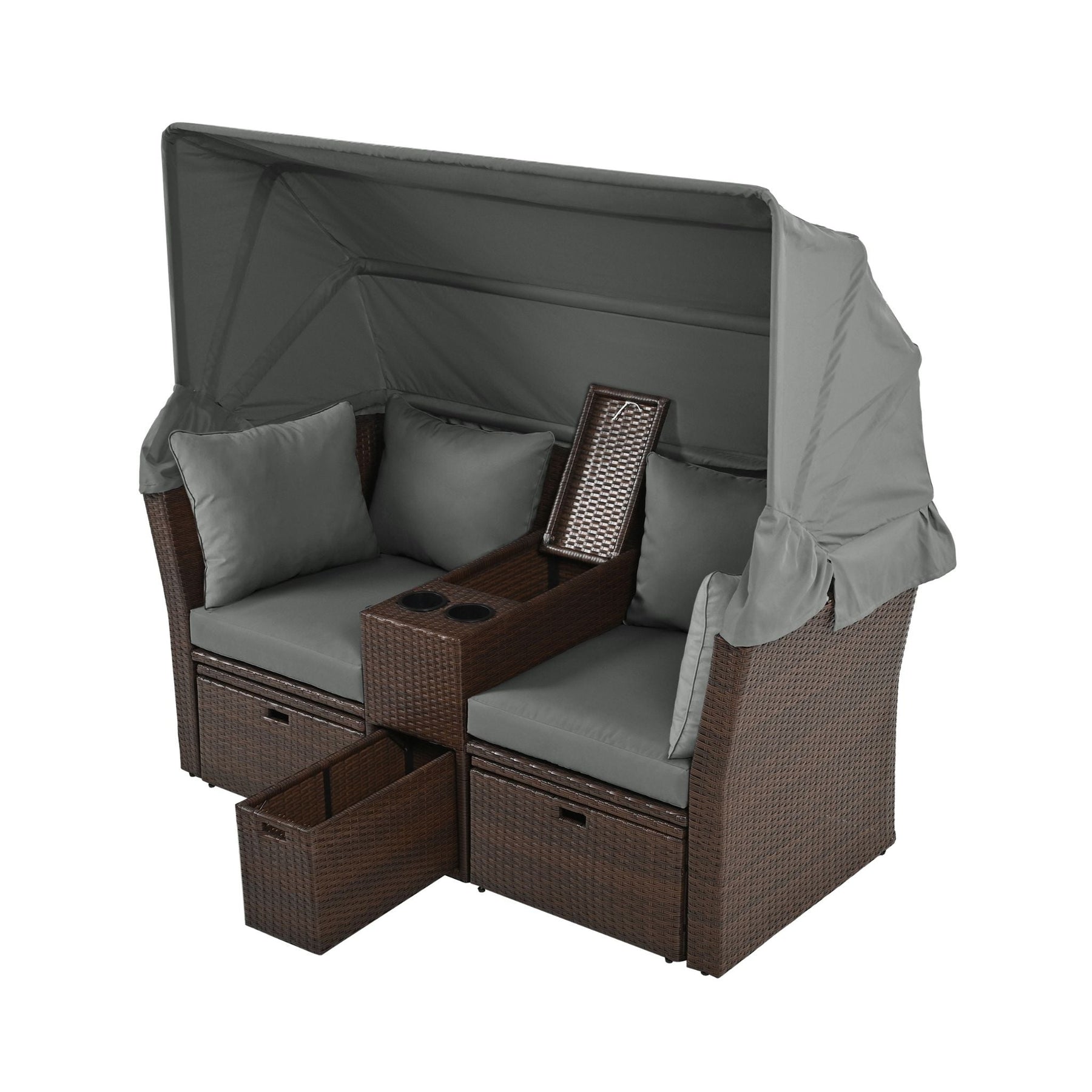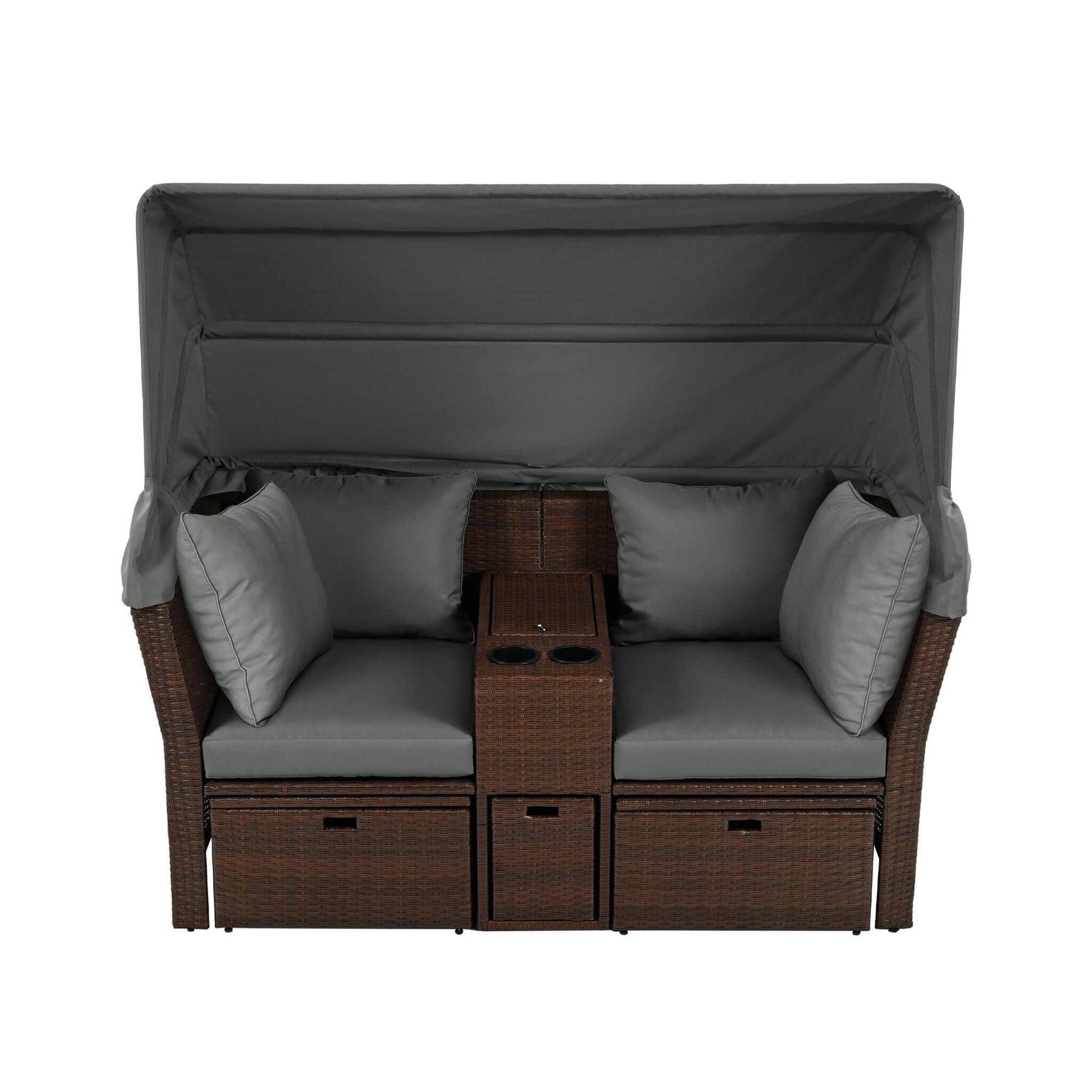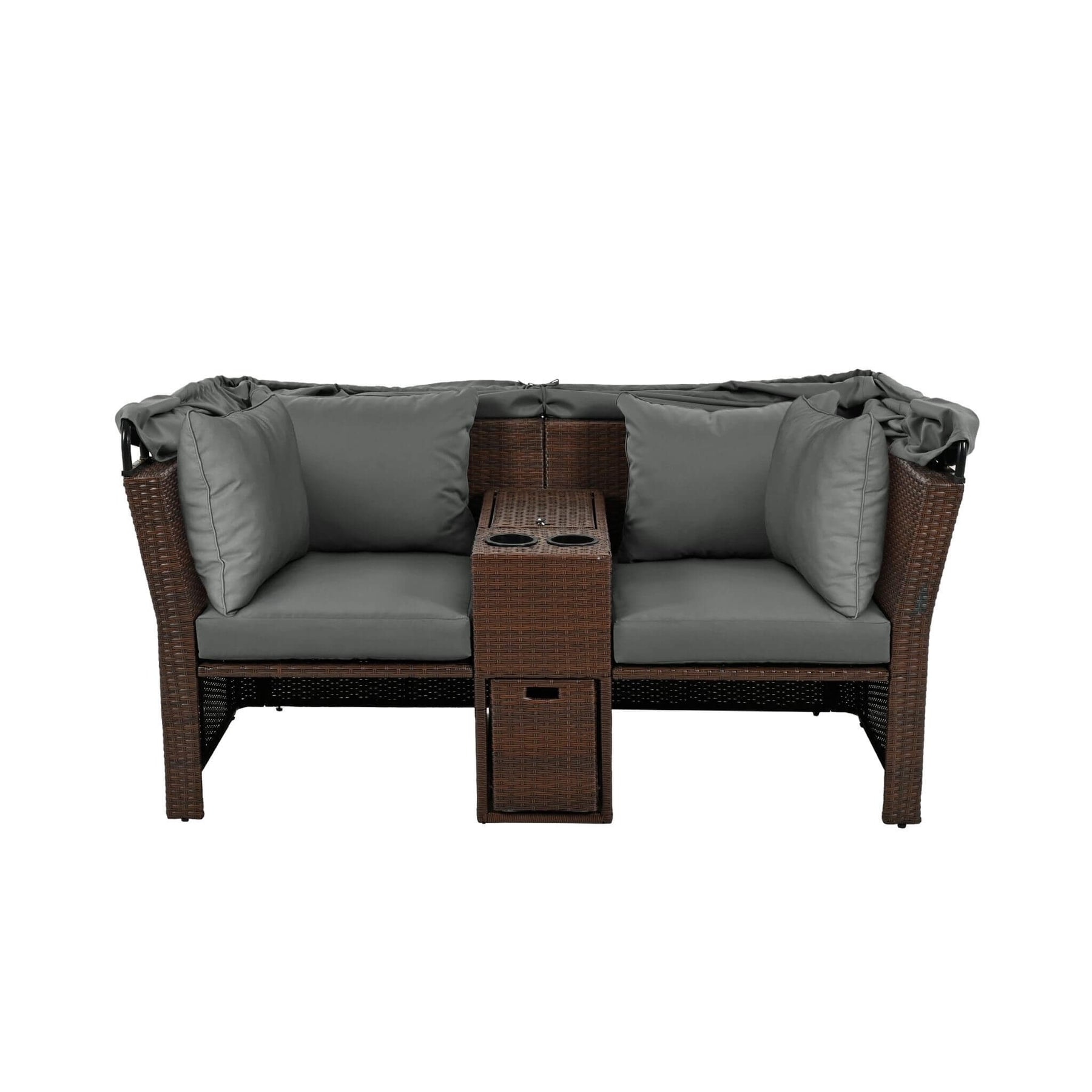 Premium Outdoor 2-Seater Patio Daybed With Foldable Awning, Cushions, And Rattan Frame (SAK90233)