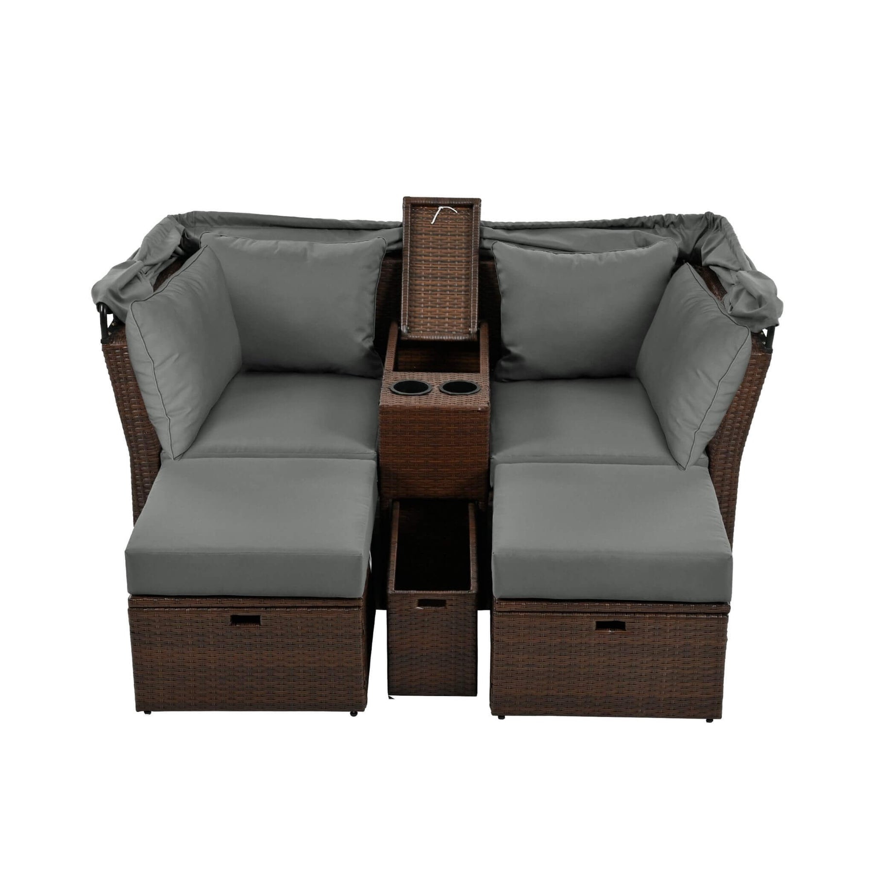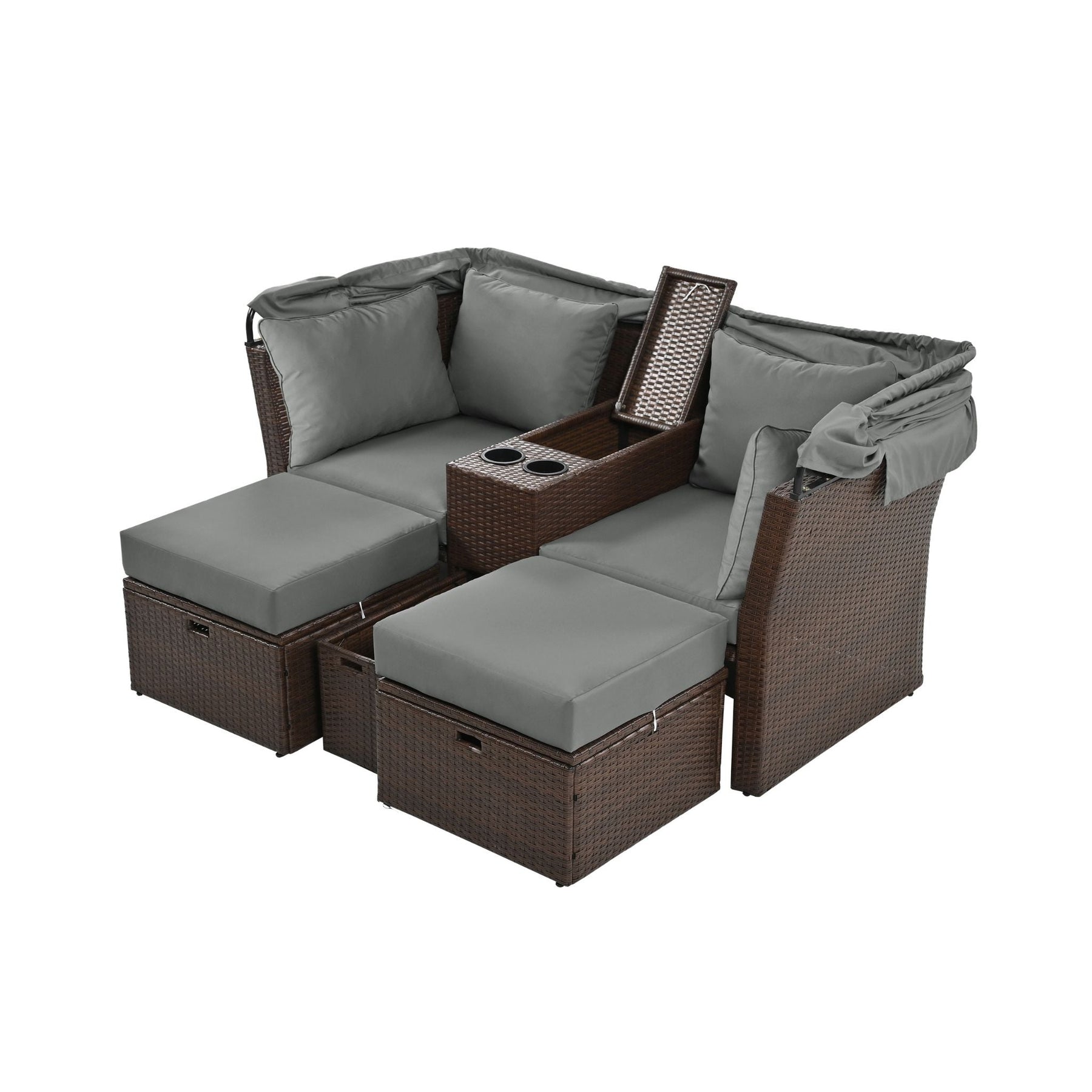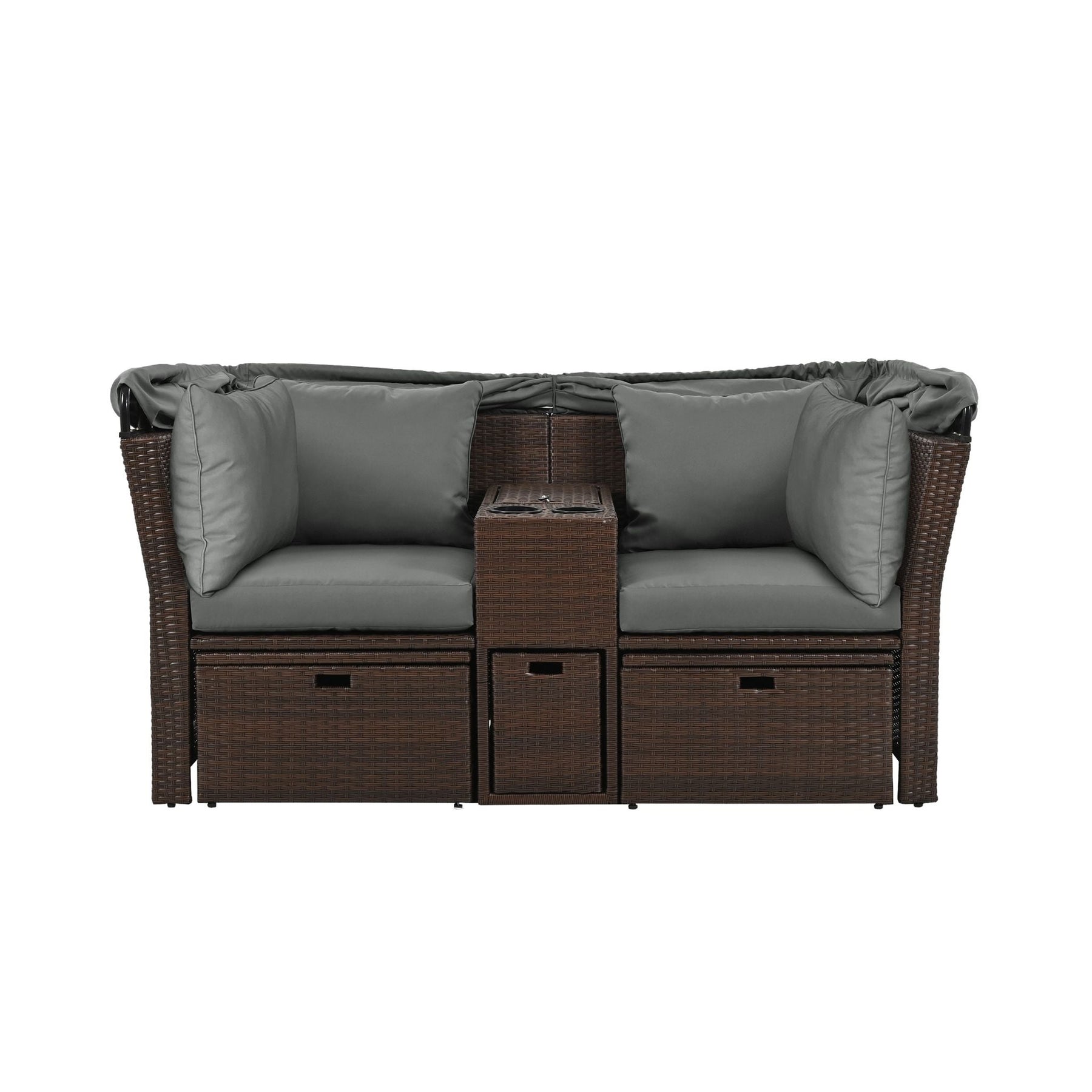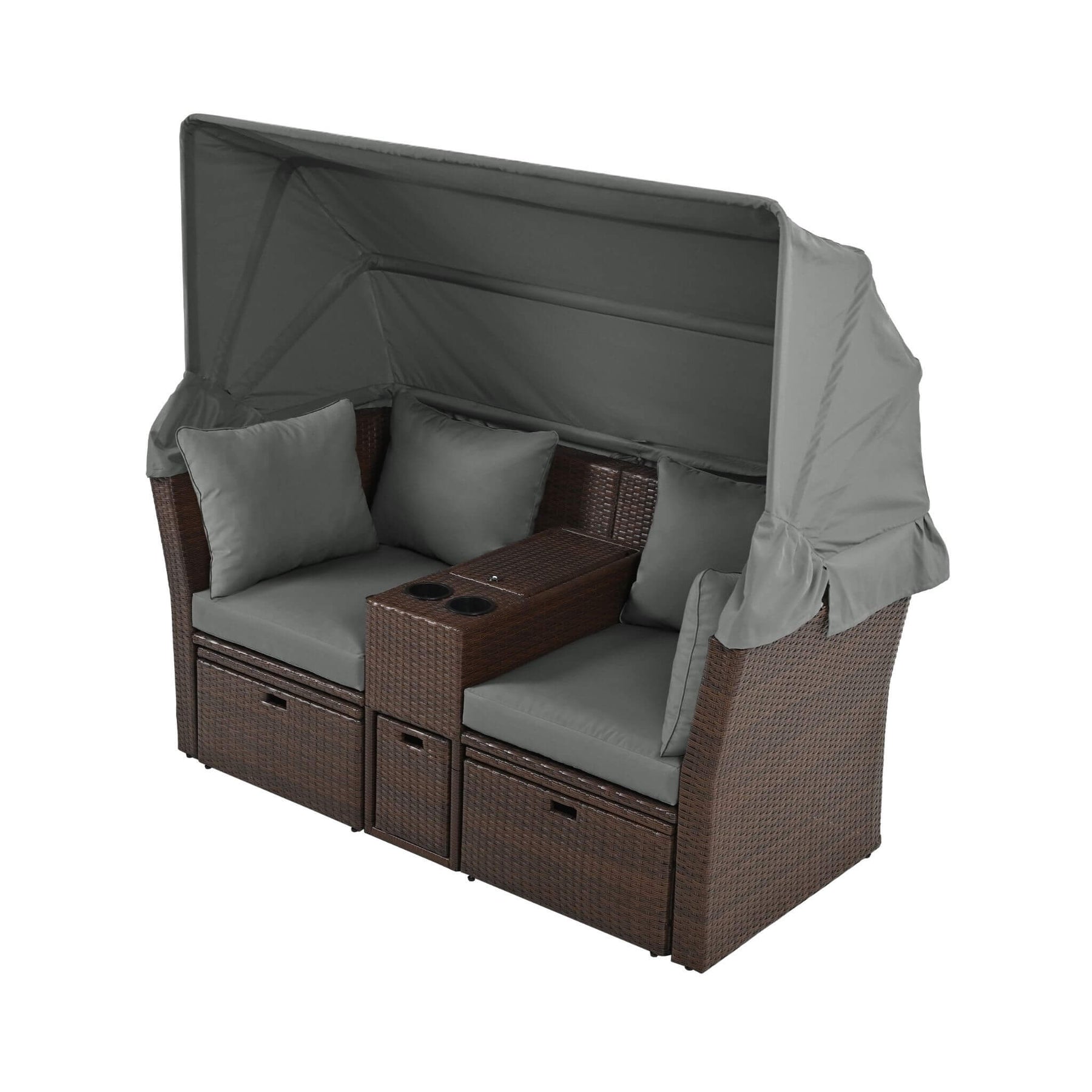 Premium Outdoor 2-Seater Patio Daybed With Foldable Awning, Cushions, And Rattan Frame (SAK90233)