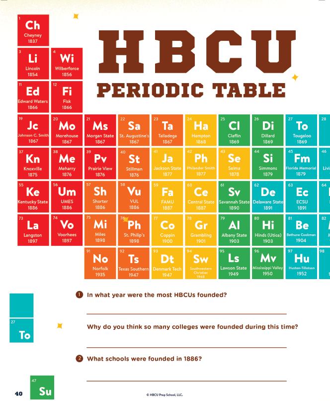 • Engaging prompts Thought-provoking questions and activities that explore patents, tuition history, and the Civil Rights Movement’s impact through student voices.