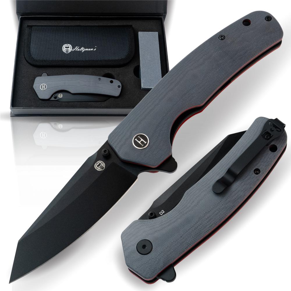 Meet The Clip Point Folding Pocket Knife Giftset for Men and Women (Grey and Red) — a reliable EDC tool built for emergencies and everyday adventures. This premium 8.5" long folding knife features a razor-sharp 3.58" blade crafted from D2 Steel, guaranteed to cut easily wood, paper, plastic or aluminum without going blunt.